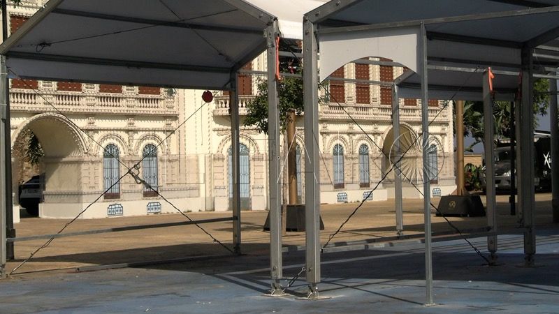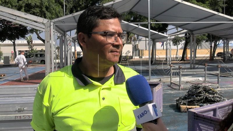 José Colomaro, uno de los trabajadores de Spain Tents, emprsa que se encarga por primera vez del montaje y desmontaje de las casetas de la Feria de Ceuta, ha hablado con FaroTV y ha señalado que, “a pesar de los contratiempos del primer día, se ha avanzado conforme lo teníamos ya planificado”.