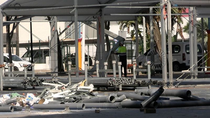 Las casetas que durante ocho noches han albergado cenas, bailes y miles de momentos inolvidables, ahora son un amasijo de hierros.