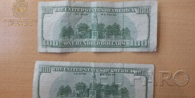 Agentes de la Jefatura Superior de la Policía Nacional han detenido a un individuo de 34 años, cuya identidad responde a las iniciales J.E.Y.R., después de que supuestamente cambiase a moneda marroquí al menos 20 billetes falsos de 100 dólares.