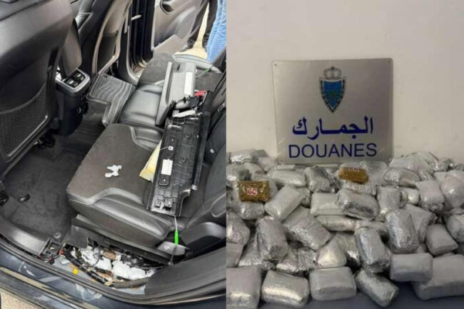 Agentes aduaneros de Marruecos han detenido a los dos ocupantes de un coche cuando querían cruzar a Ceuta con más de 50 kilos de hachís.