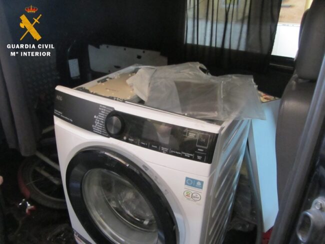 Fue el 18 de junio a las 14:30 horas cuando la Guardia Civil lo detuvo. Iba a embarcar conduciendo una Mercedes Vito llena de enseres, entre ellos esta lavadora que tenía truco, ya que ocultaba 91 bloques de hachís.