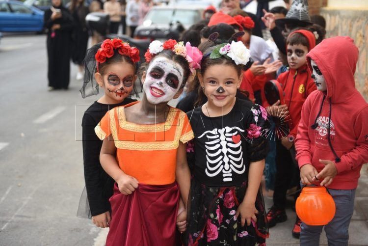 La mañana se ha iniciado con un pasacalles por los alrededores del colegio, por la barriada Solís. En compañía de padres, madres y familiares, han estado todos los escolares por el recorrido al que no le ha faltado música tanto de la película Coco como de Halloween.