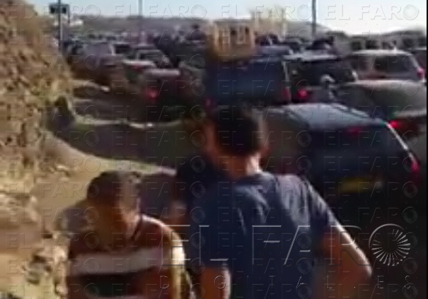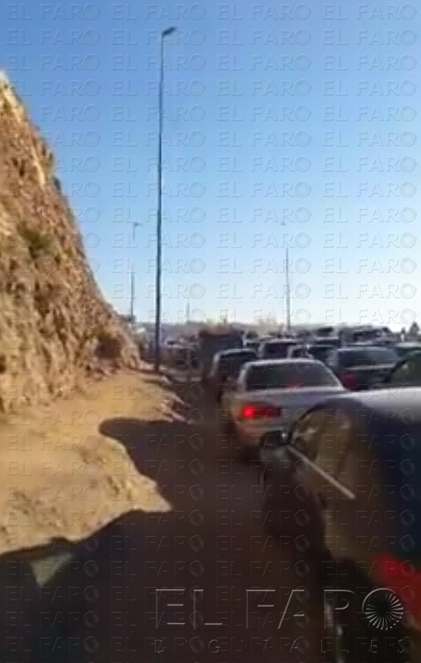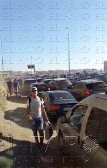 La combinación de ambos factores dejó ayer estampas como la que se vio en la frontera con sentido de entrada a nuestra ciudad. La carretera estaba completamente colapsada de vehículos que incluso invadieron el sentido contrario de la circulación. El atasco que se puede ver en las imágenes corresponden a la mañana de ayer en Marruecos. Coches apelotonados ocupando todos los carriles de la vía y parados. Este monumental colapso de la frontera impedía igualmente la circulación de los vehículos que trataban de entrar en Marruecos, si bien no son muy numerosos a primera hora del día. Esta semana las colas de espera para cruzar a Marruecos se han venido registrando máxime tras el puente de agosto. Las colas se prolongaban no solamente en las inmediaciones del puesto fronterizo sino también en los accesos a las barriadas de Loma Colmenar y la del Príncipe ocasionando horas y horas de espera. Los días duros de la fase de retorno de la OPE han comenzado y ya se están empezando a notar en la ciudad, como fue el pasado martes en nuestro puerto, donde un centenar de ciudadanos marroquíes hicieron noche en las instalaciones de la Estación Marítima para poder embarcar al día siguiente en alguno de los buques que nos conectan con la península. Las imágenes de las colas que se registraron ayer en la zona marroquí de la frontera del Tarajal forman parte de la grabación realizada por uno de nuestros lectores, impresionado por la envergadura del colapso, con filas y filas de vehículos que ocupaban todo el ancho de la calzada, incluso las vías en sentido contrario a la circulación. A los lados de la carretera los peatones se vieron obligados a caminar por el terreno aledaño ante la inexistencia de una acera, siendo testigos así del colapso.