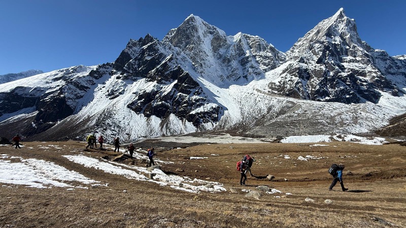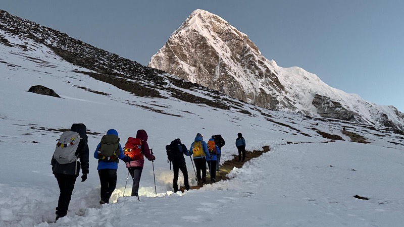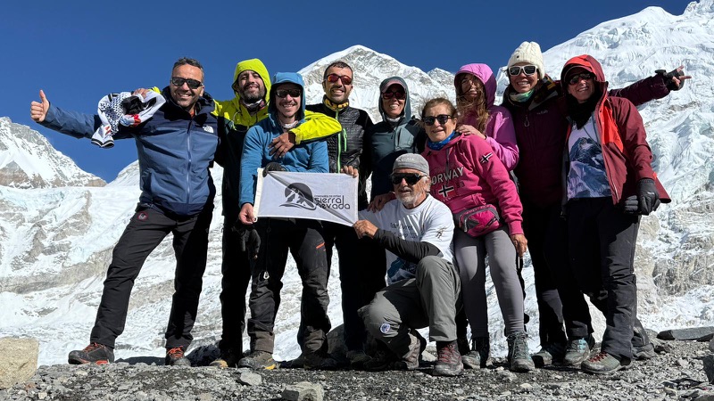 El objetivo: alcanzar el Campo Base del Everest, a 5.364 metros. Y no solo lo lograron, sino que además tocaron dos cumbres: Nangkartshang (5.077 m) y Kalapatar (5.644 m), un mirador privilegiado del Everest que, esta vez, apareció cubierto de una capa de hielo.