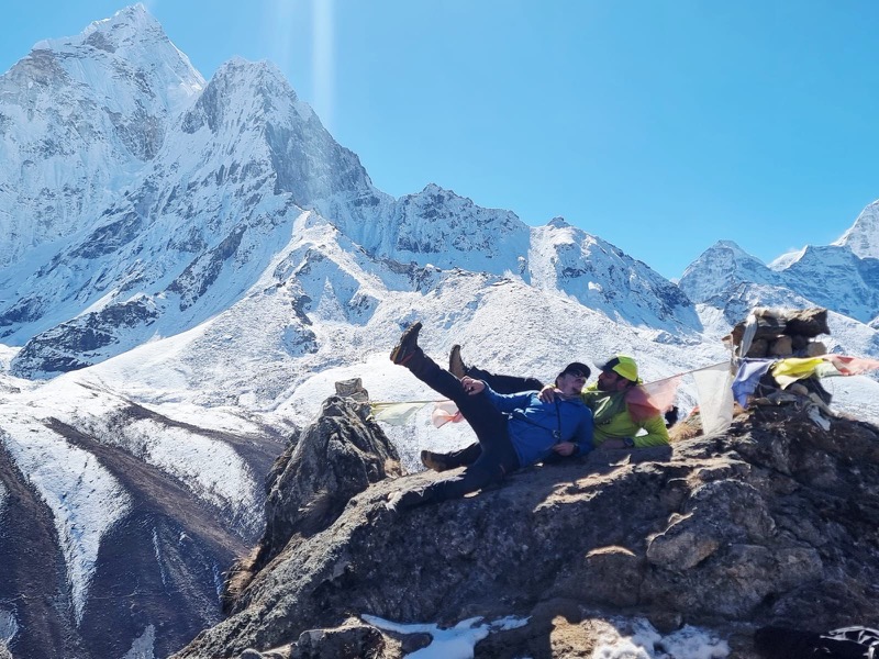 Entre risas, cuenta una de las anécdotas del viaje. “Cuando llegábamos a Kalapatar, una montaña de 5.640 metros aproximadamente, Sergio empezó a narrar la escena como si estuviera en ‘Al filo de lo imposible’. Estábamos tiritando y él ahí, imitando al jefe de expedición, fue muy cómico”. La bajada terminó, literalmente, “de culo” por el hielo.