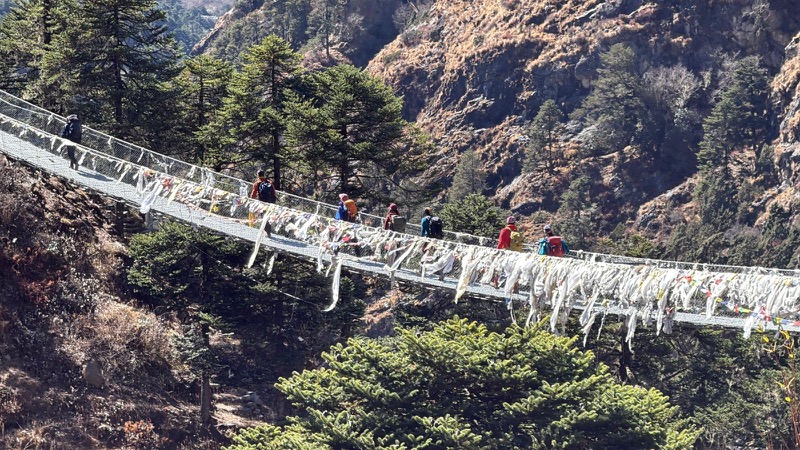 Desde allí, una avioneta les llevó a Lukla, el famoso aeropuerto considerado el más peligroso del mundo por su pista de apenas 450 metros. “Aterrizan avionetas muy pequeñitas, ahí ya empieza la aventura desde el minuto uno”, relata.