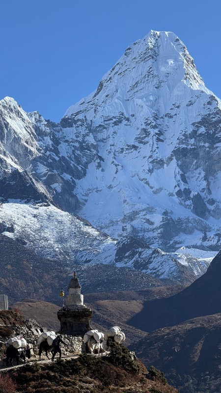 Diego describe la región del Khumbu como un lugar “XXXL”. “Las morrenas, los glaciares, las montañas… las dimensiones son impresionantes. Es abrumador”. Afortunadamente, el clima acompañó con “doce días de sol. Un regalo”.