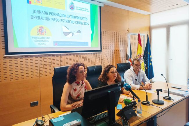 La sede de la Seguridad Social de Ceuta acoge hoy una jornada formativa de Protección Civil en el que intervienen representantes de los dispositivos que forman parte de la Operación Paso del Estrecho (OPE) 2025.