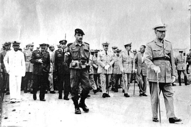 Entierro de los fallecidos. Preside el general gobernador Ramón Pardo de Santayana, y el comandante Tomás Pallás Sierra, jefe de la II Bandera Paracaidista. Foto familia Pardo de Santayana