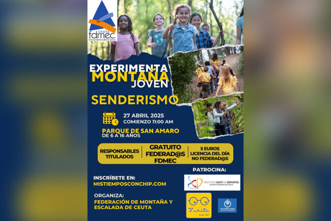 La Federación de Deportes de Montaña y Escalada de Ceuta continúa este fin de semana con su programa 'Experimenta Montaña Joven', mediante el que pretende hacer cantera, atrayendo a los deportes de montaña a menores de entre 6 y 16 años. En esta ocasión, la actividad programada abordará la modalidad de Senderismo.
