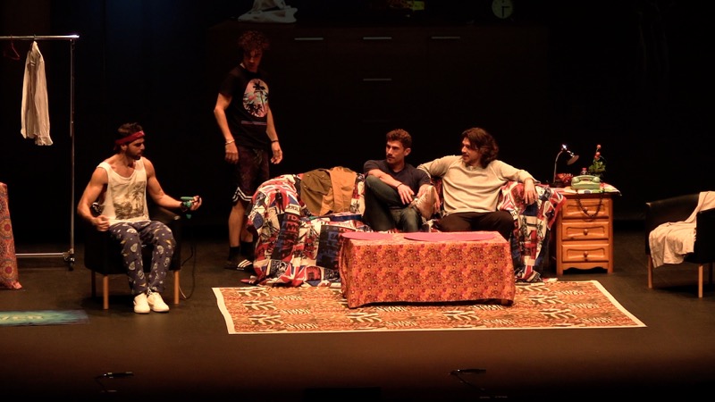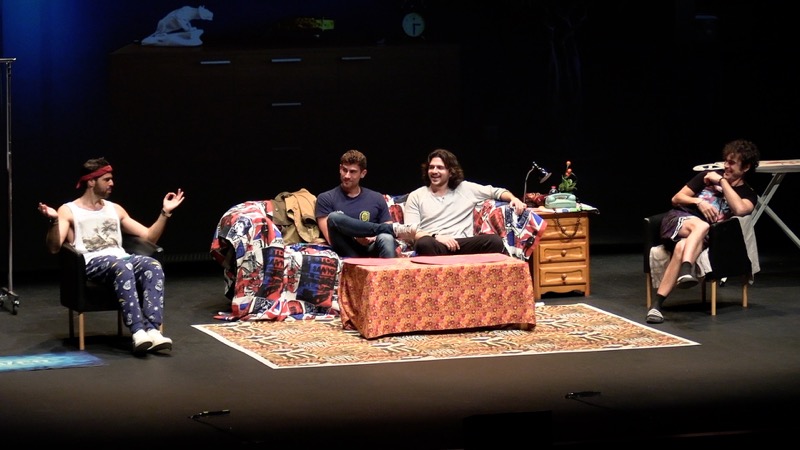Música de discoteca dio paso al comienzo de este teatro y, de repente, un grupo de cuatro amigos charlaba sobre su llegada a Madrid, sobre sus vidas, la búsqueda de empleo, estudios y, como no podía ser de otra manera, de nuevos amores.