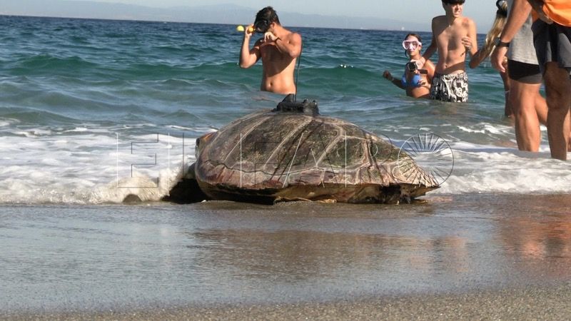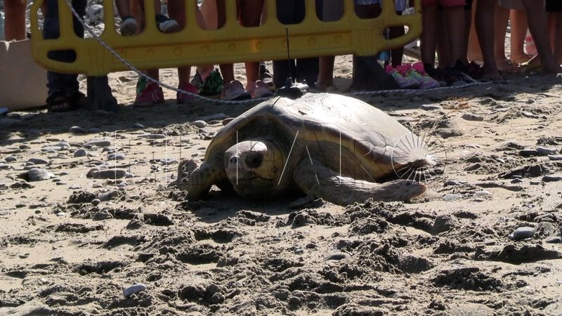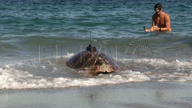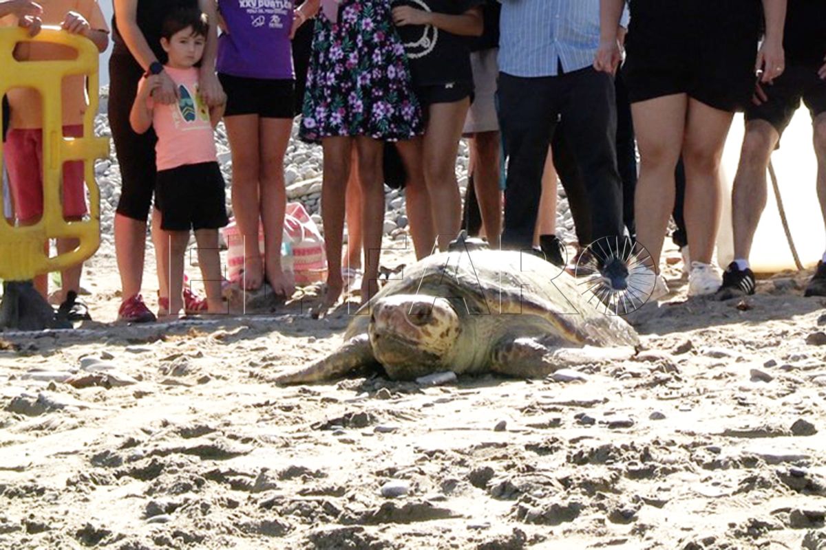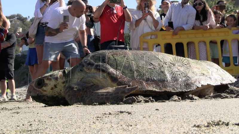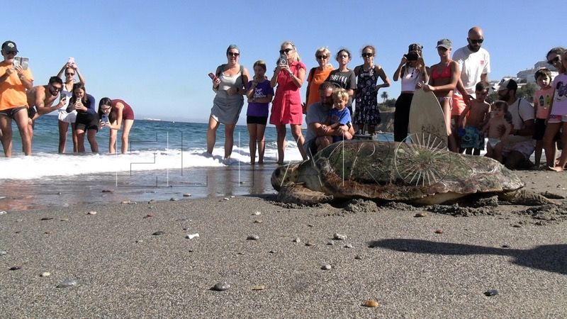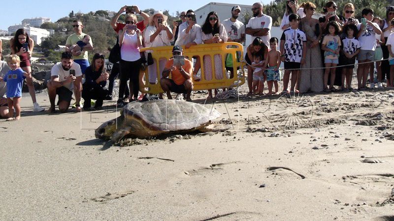 La vuelta a casa de estas dos tortugas bobas -primero la hembra y tras ella el macho- ha congregado a familias, curiosos y bañistas que se encontraban en el lugar.