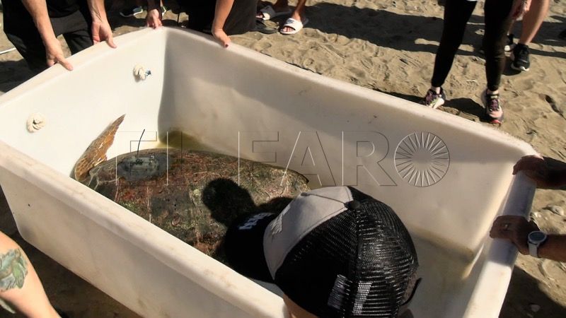 Las dos tortugas liberadas este domingo, y otras tantas, llegan al centro gracias a la colaboración entre buzos de la Almadraba, los GEAS y particulares que avisan al CECAM al encontrarlas en apuros.