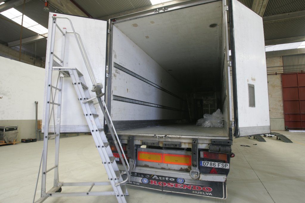 Tras visualizarlo por medio de un escáner, en el camión que se abordó en Algeciras en el mes de mayo, se comprobó la existencia de un doble fondo practicado en la parte frontal de la caja del remolque, que podría contener géneros ilícitos, por lo que los funcionarios procedieron a su reconocimiento físico. De este modo, descubrieron un espacio disimulado de unos tres metros de ancho, por tres de alto y uno de profundidad, en cuyo interior se hallaron 87 bolsas de deporte que contenían la sustancia estupefaciente, cuyo peso total ascendió a 1.834 kilos de resina de hachís. En consecuencia, se procedió a la detención de su conductor, quien fue puesto, junto con la sustancia estupefaciente intervenida.