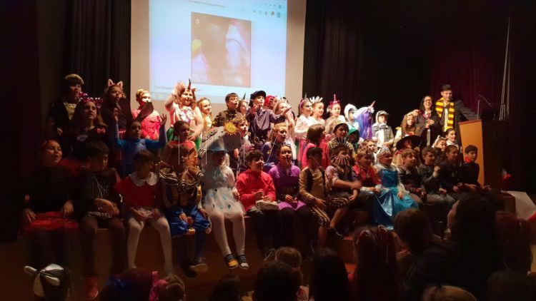 El colegio San Daniel ha celebrado esta viernes el carnaval con todo tipo de actividades en las que hicieron máscaras, dieron historia del carnaval y cómo se celebra en otras partes del mundo. Asimismo los alumnos desayunaron bizcochos caseros para posteriormente convertir el salón de actos del centro en un pequeño Falla donde entonaron las coplas de comparsas y chirigotas de todos los tiempos. Para finalizar la jornada eligieron al Dios Momo y a la Ninfa del carnaval, todo bajo la temática de Harry Potter.