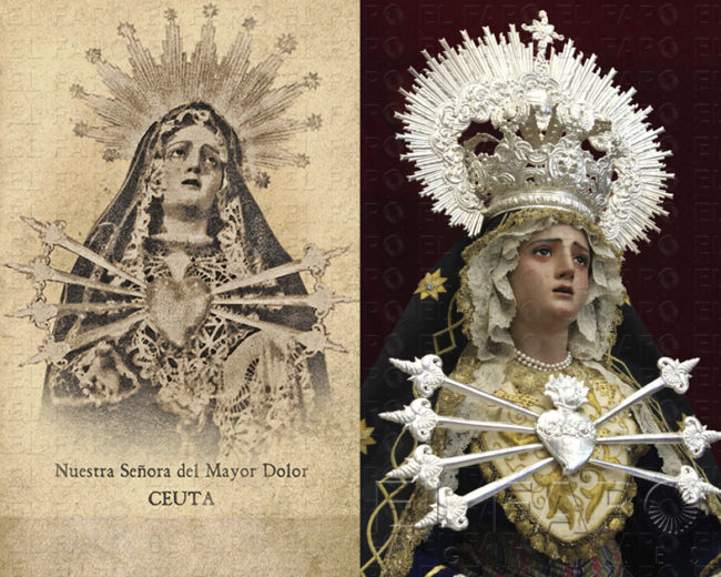 Tal y como informaron desde esta corporación a través de una nota de prensa, Nuestra Señora del Mayor Dolor “presentará un aspecto novedoso, aunque siempre dentro del estilo clásico que persigue la Hermandad, ya que se ha recreado una pieza propia de su ajuar perdida a mediados del siglo pasado: el corazón atravesado por las siete espadas que simbolizan los principales dolores que sufrió la Santísima Virgen, elemento que ha sido realizado por Orfebrería Castilleja (Sevilla) tomando como modelo antiguas fotografías de la Dolorosa de los Remedios”.