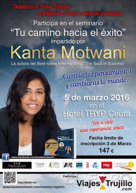 El seminario se celebrará el próximo sábado 5 de marzo en el hotel Tryp y las inscripciones se podrán formalizar hasta el 3 de marzo en la en la página de Motwani www.kantamotwani.com/eventos.