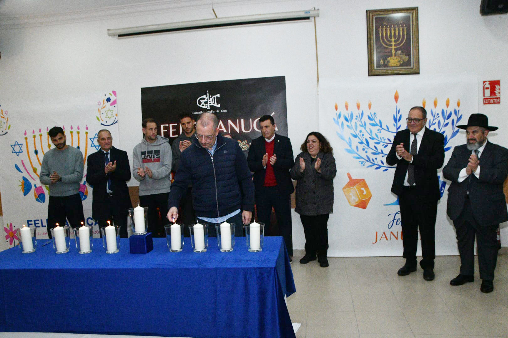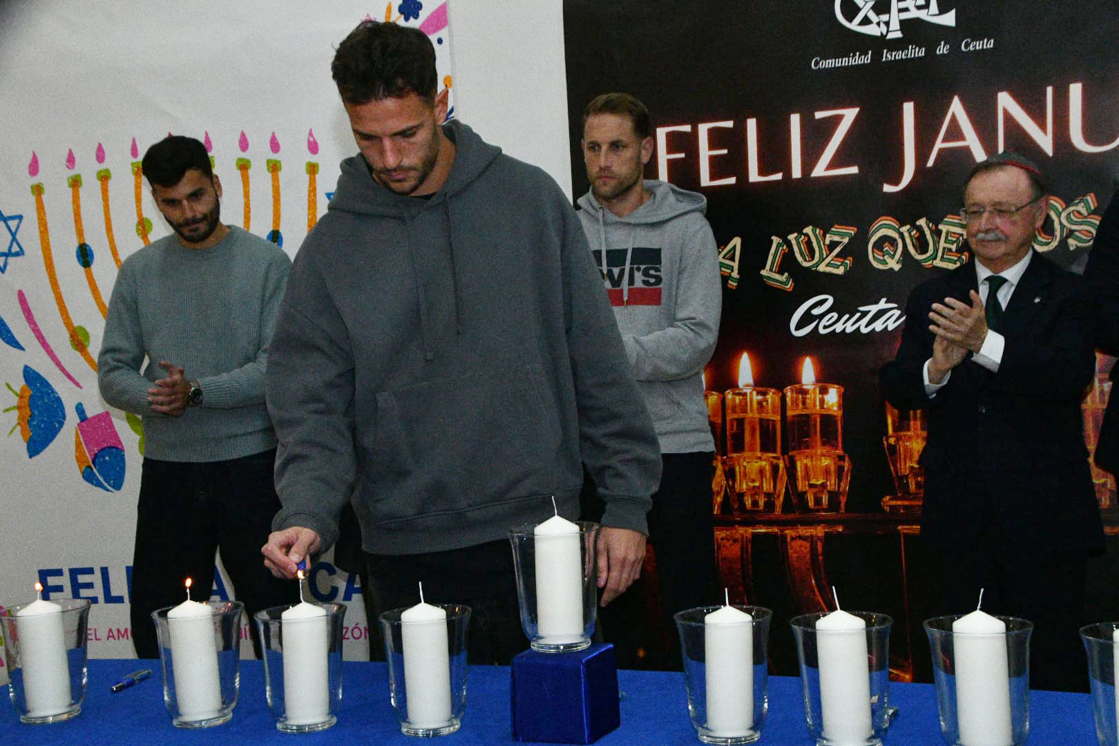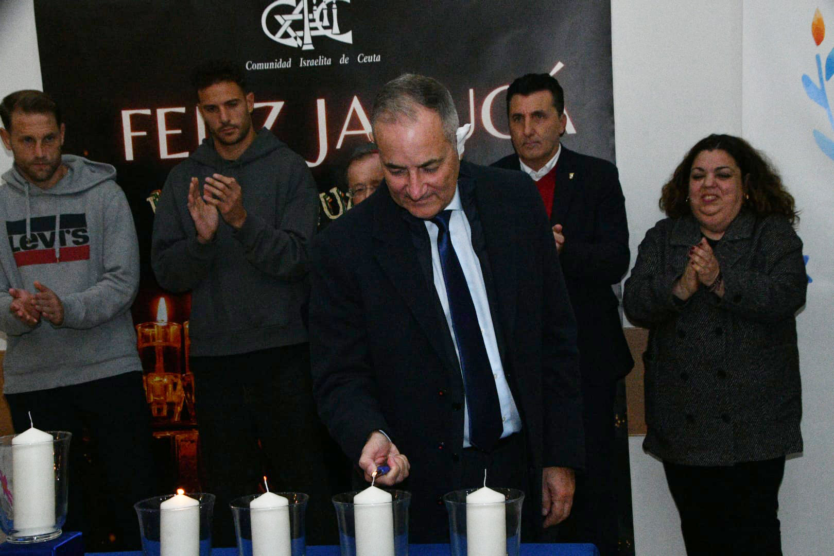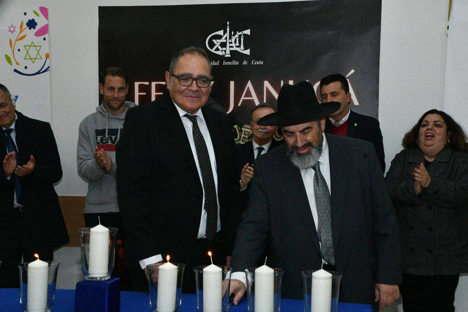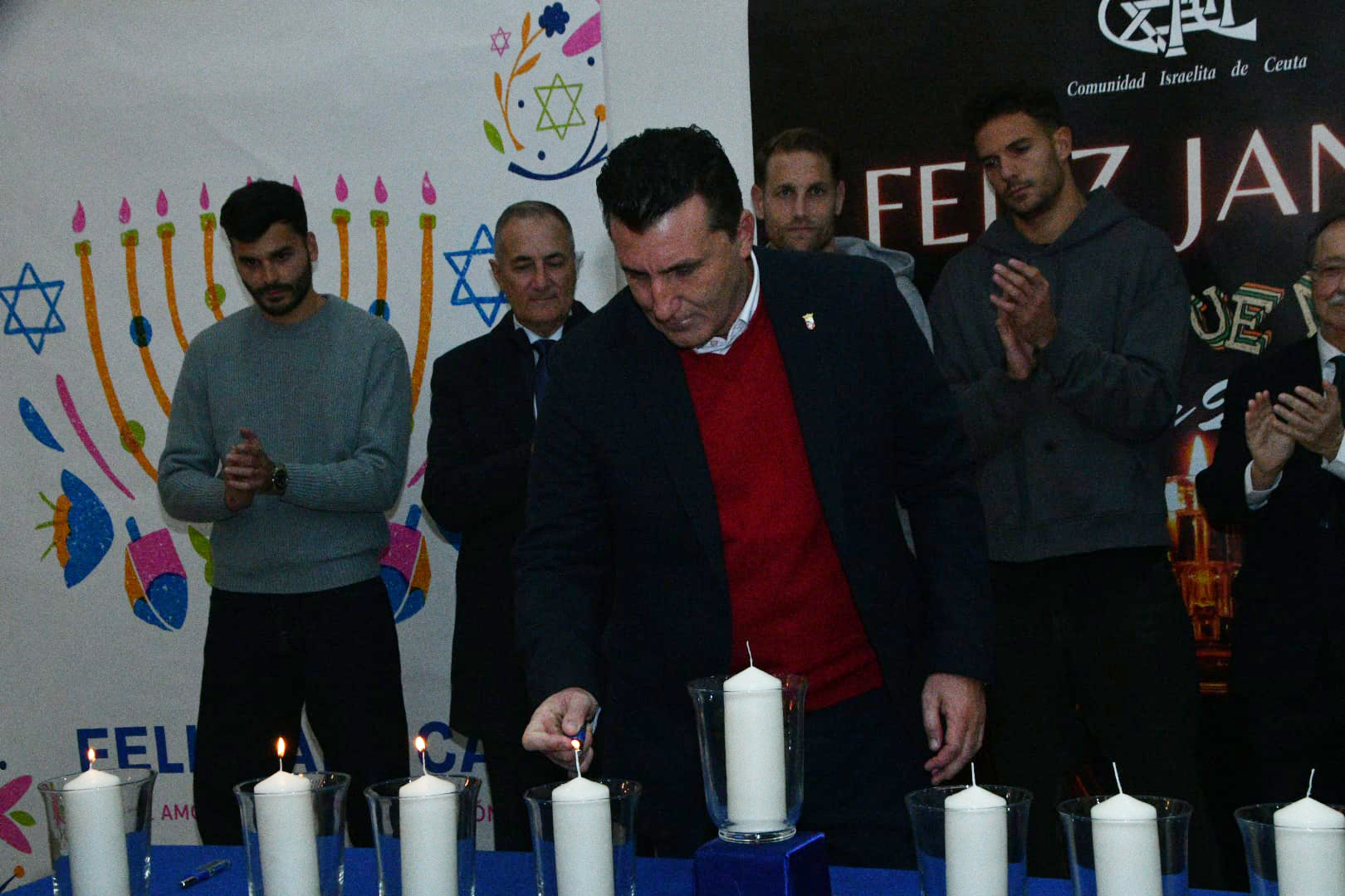 Este año, los encargados de encender las tradicionales velas han sido por este orden: Albert Capa, jugador de la AD Ceuta; Carlos Hernández, jugador de la AD Ceuta; Pedro López, portero del Ceuta; Eduardo Villegas, director deportivo de la entidad caballa; José Juan Romero, entrenador de la AD Ceuta; José Bentolila y Jacob Levy, presidente y rabino de la Comunidad Israelita; Luis Fernández Herrero, comandante General de Ceuta; Cristina Pérez, delegada del Gobierno y la última fue a cargo del presidente de la Ciudad, Juan Vivas.