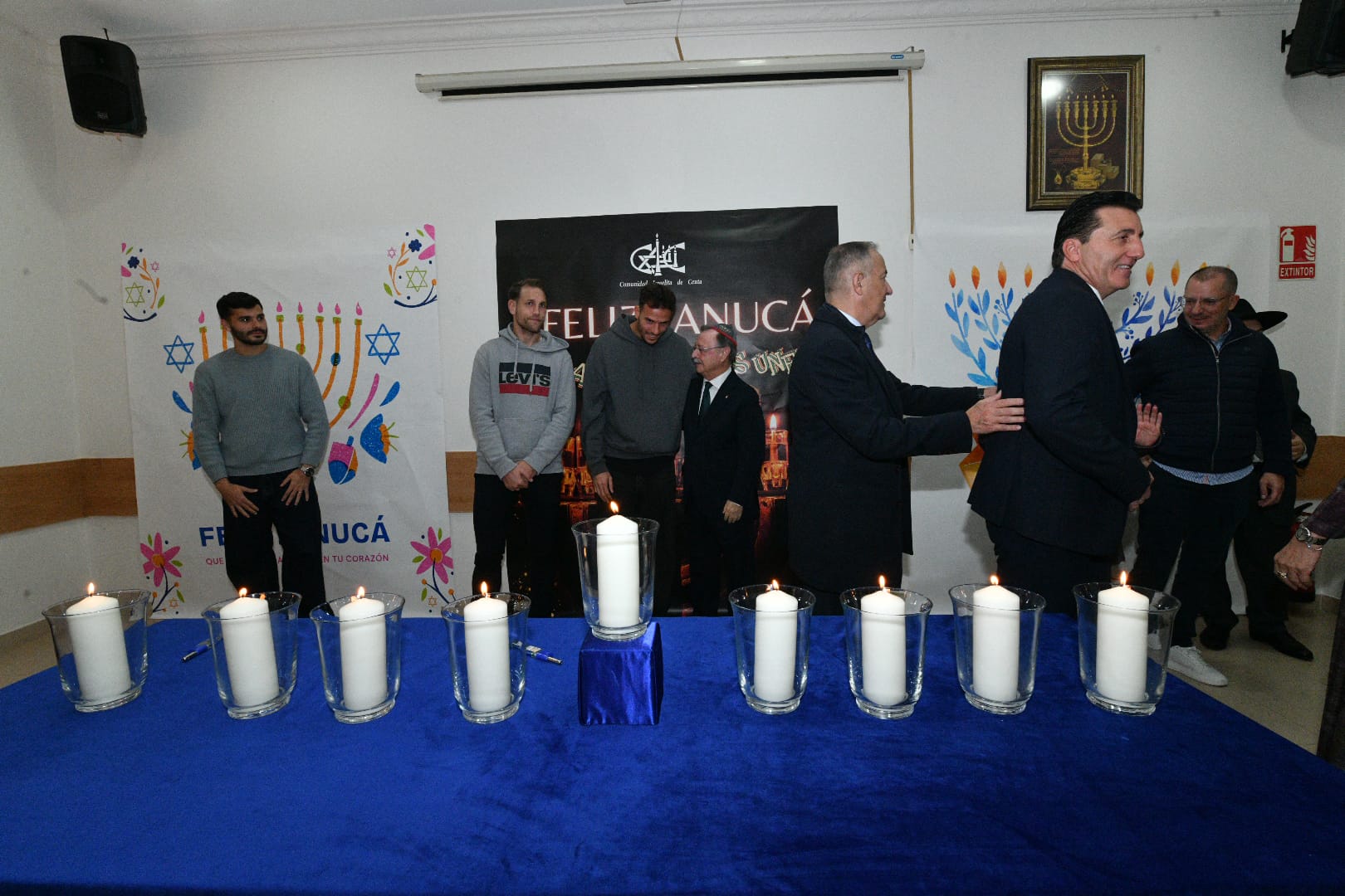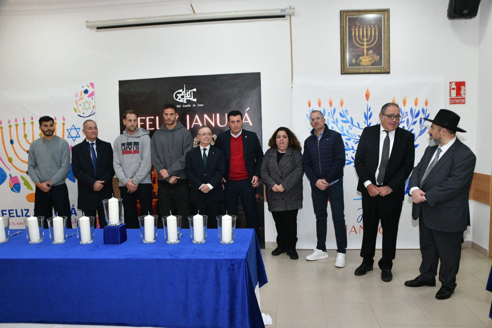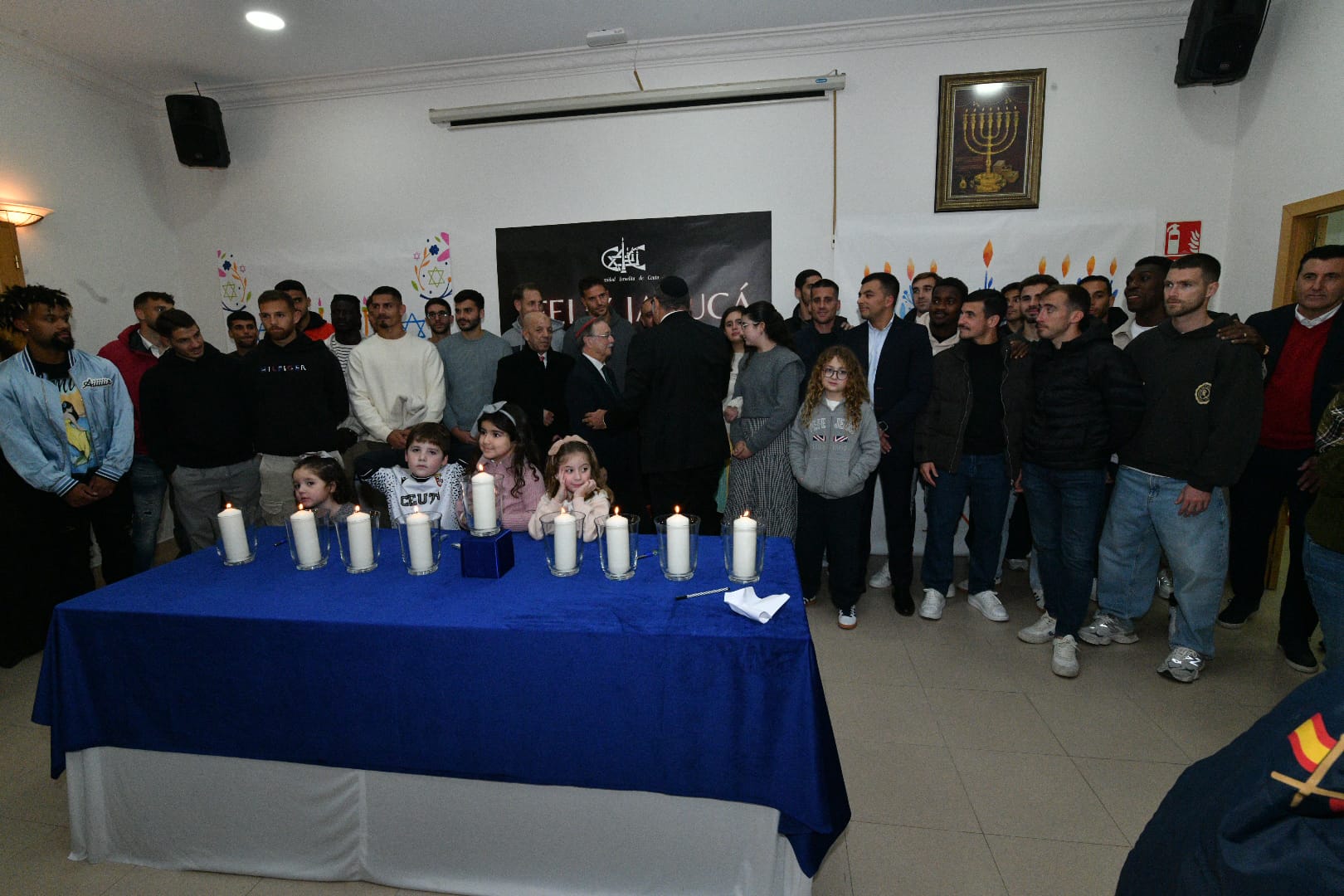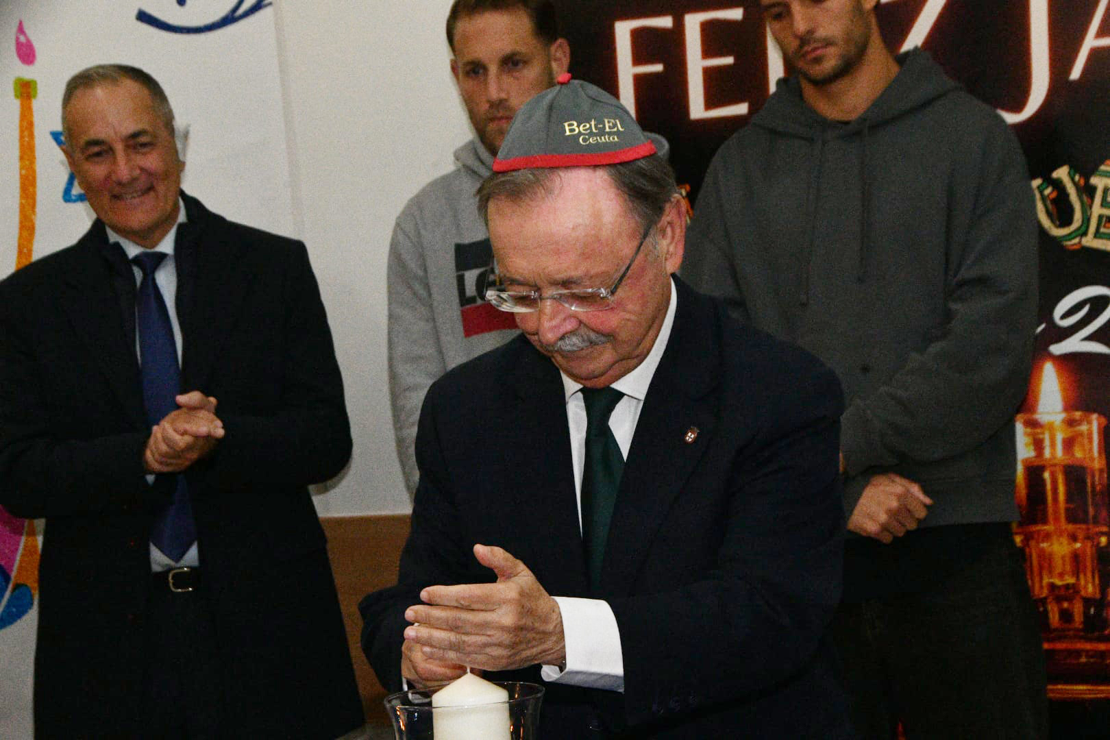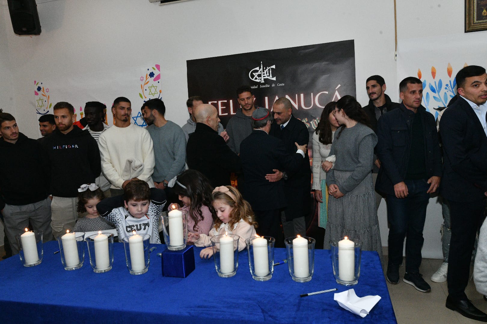 Este año, los encargados de encender las tradicionales velas han sido por este orden: Albert Capa, jugador de la AD Ceuta; Carlos Hernández, jugador de la AD Ceuta; Pedro López, portero del Ceuta; Eduardo Villegas, director deportivo de la entidad caballa; José Juan Romero, entrenador de la AD Ceuta; José Bentolila y Jacob Levy, presidente y rabino de la Comunidad Israelita; Luis Fernández Herrero, comandante General de Ceuta; Cristina Pérez, delegada del Gobierno y la última fue a cargo del presidente de la Ciudad, Juan Vivas.