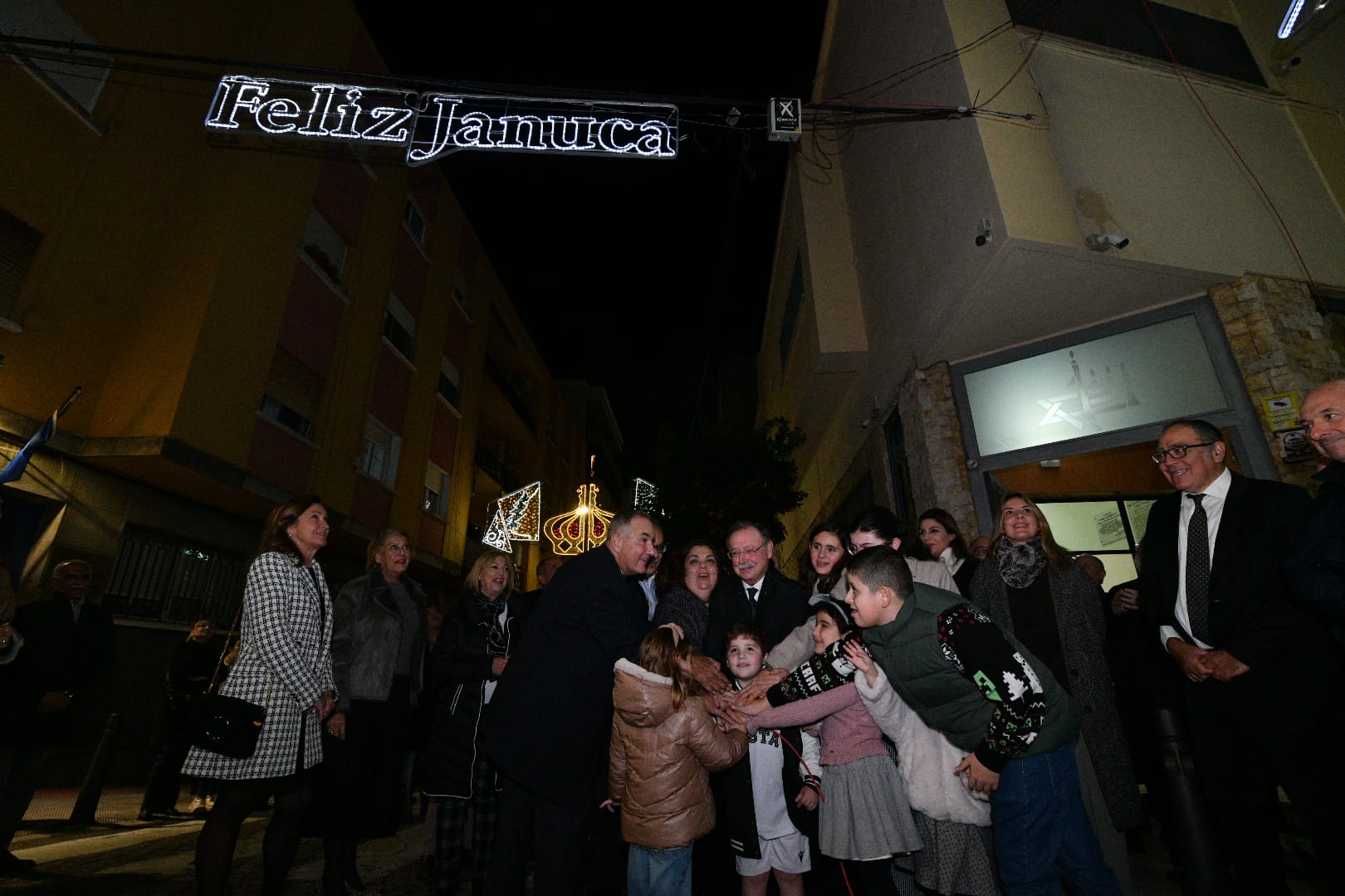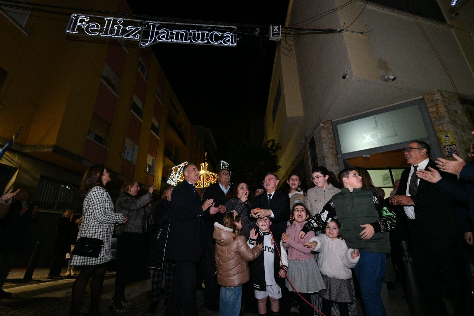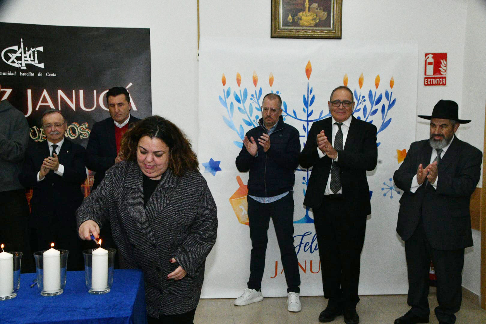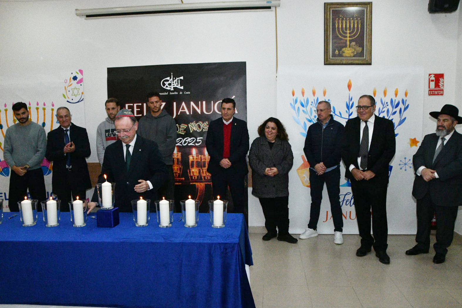 En la puerta de la sinagoga se ha llevado a cabo en la noche de este jueves el tradicional encendido de la festividad hebrea de Janucá, organizado por la Comunidad Israelita de Ceuta.