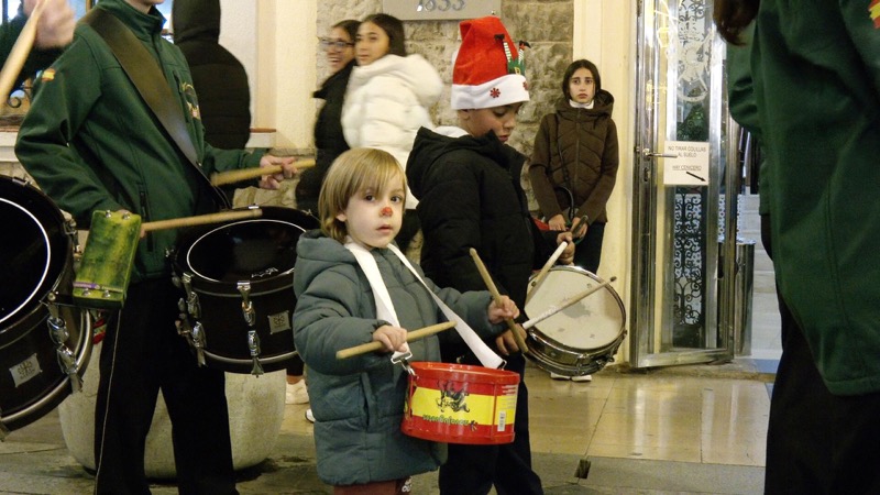 Asimismo, los tambores resonaban con fuerza por todo el centro de la ciudad. Ellos marcaban el ritmo de este pasacalles musical navideño.
