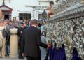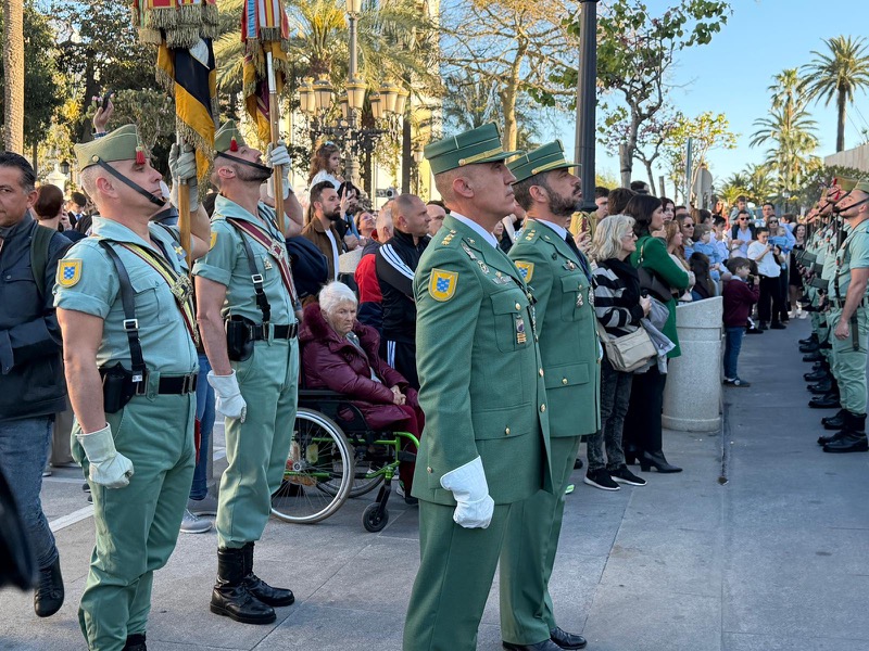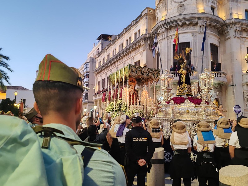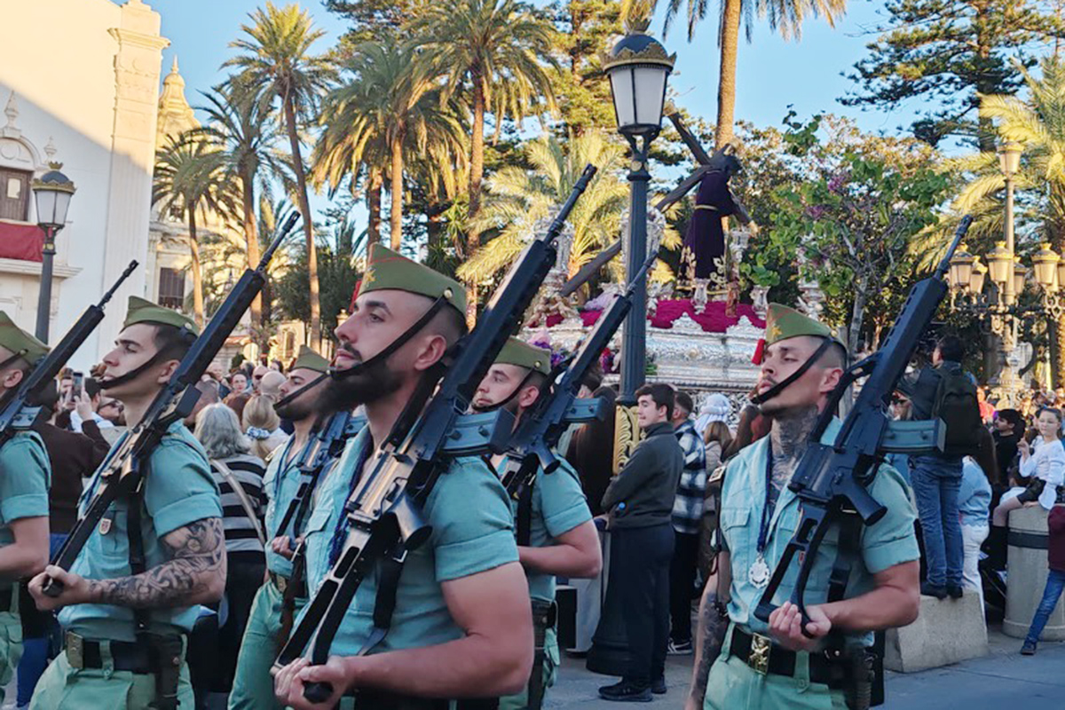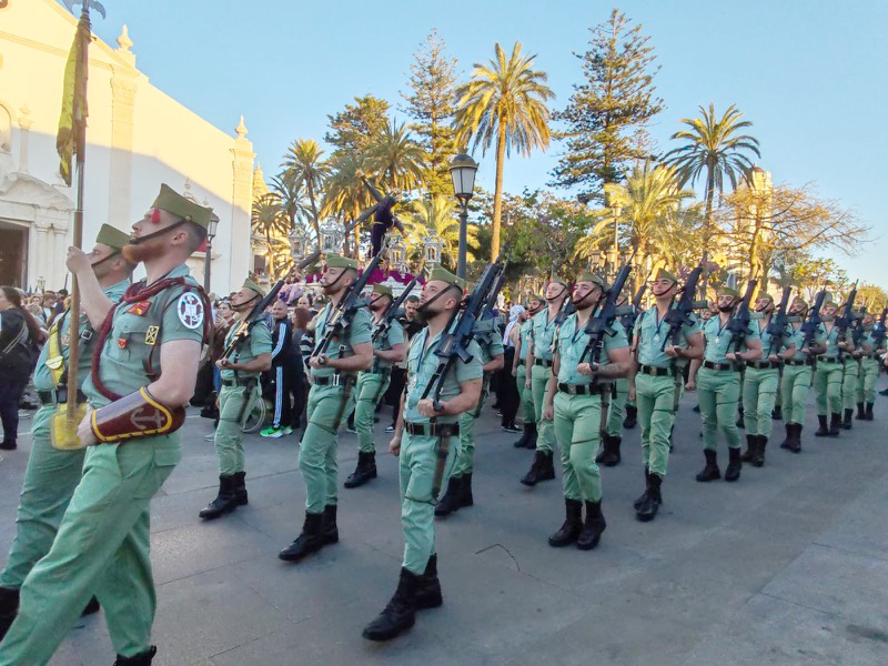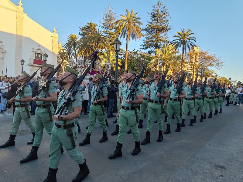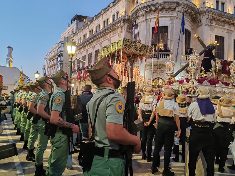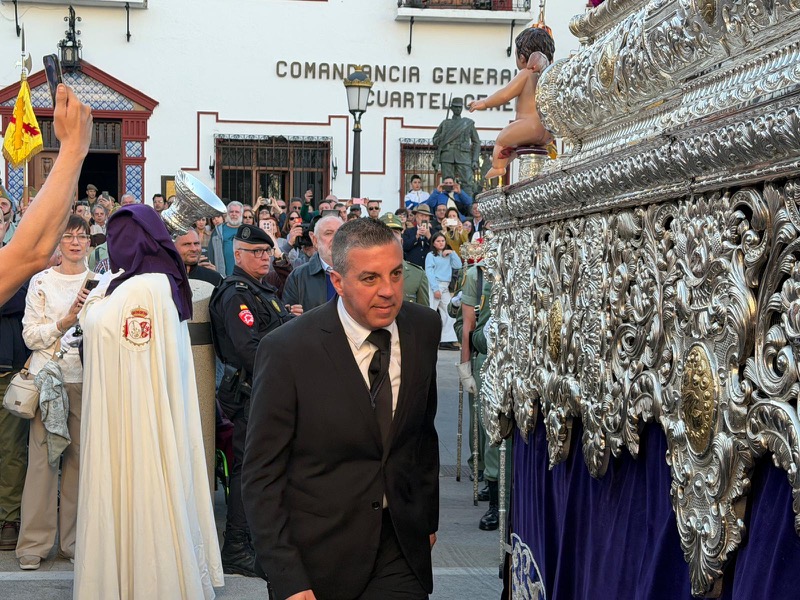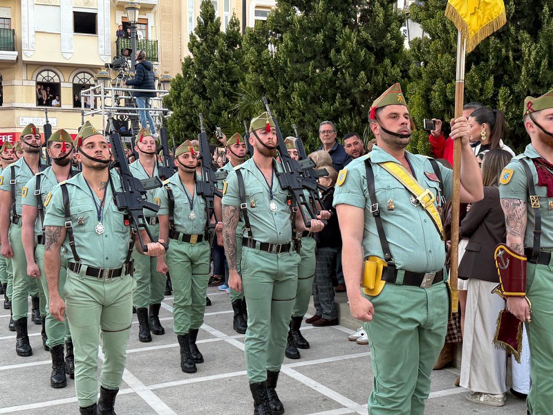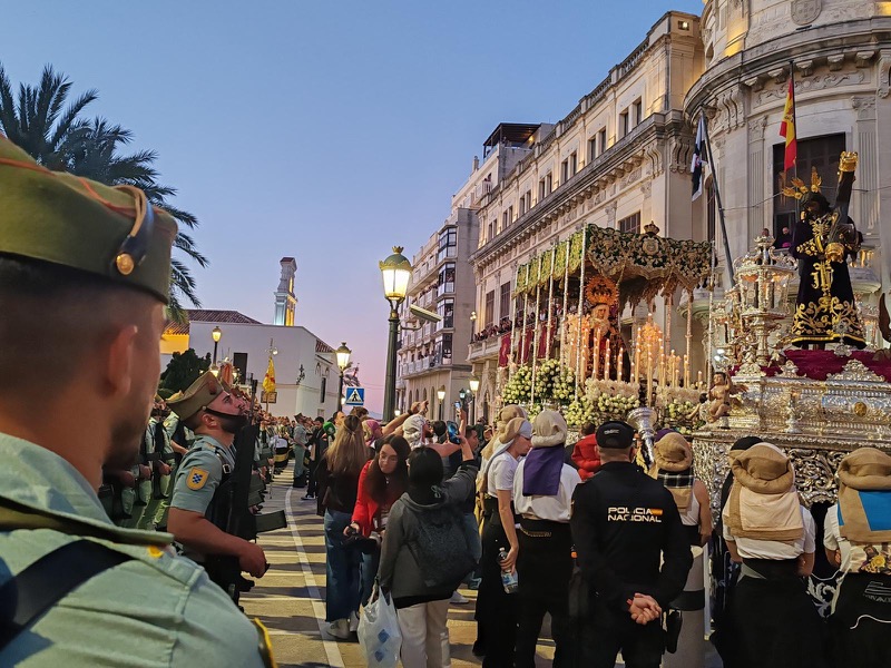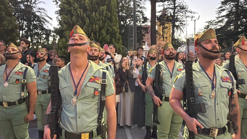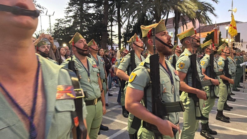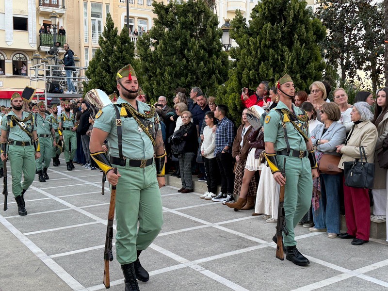 El sonido del ‘Novio de la muerte’, interpretado por La Legión, envolvió la plaza con una fuerza sobrecogedora, elevando la emoción de los presentes. La escena, repetida año tras año, no pierde su capacidad de conmover y sigue siendo uno de los grandes iconos de la Semana Santa ceutí.