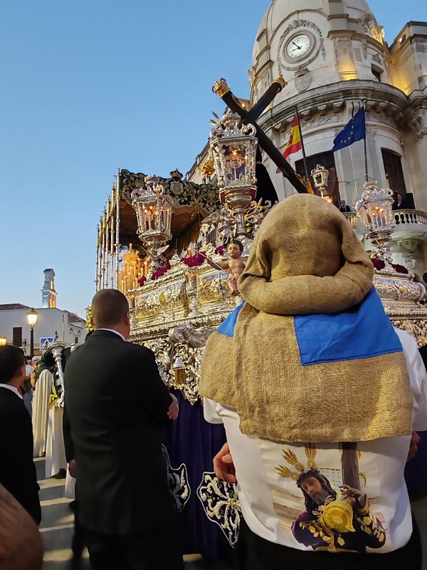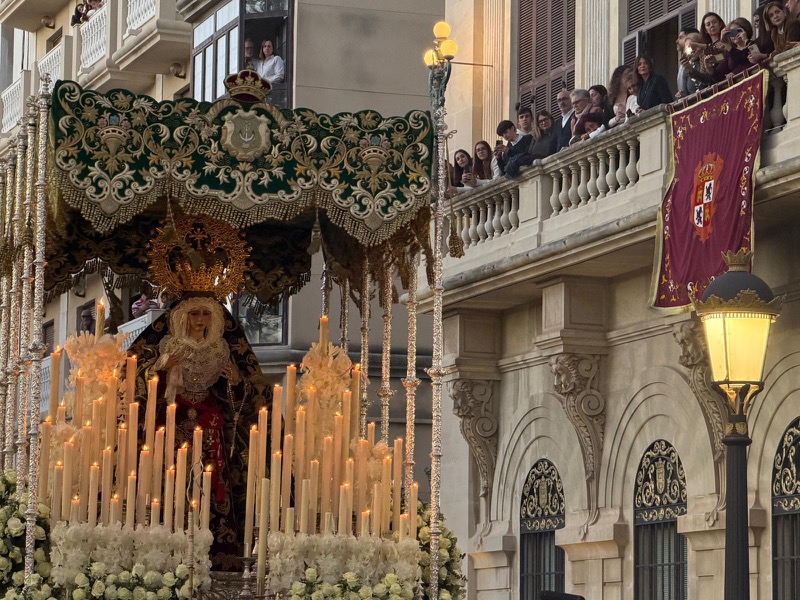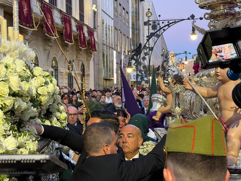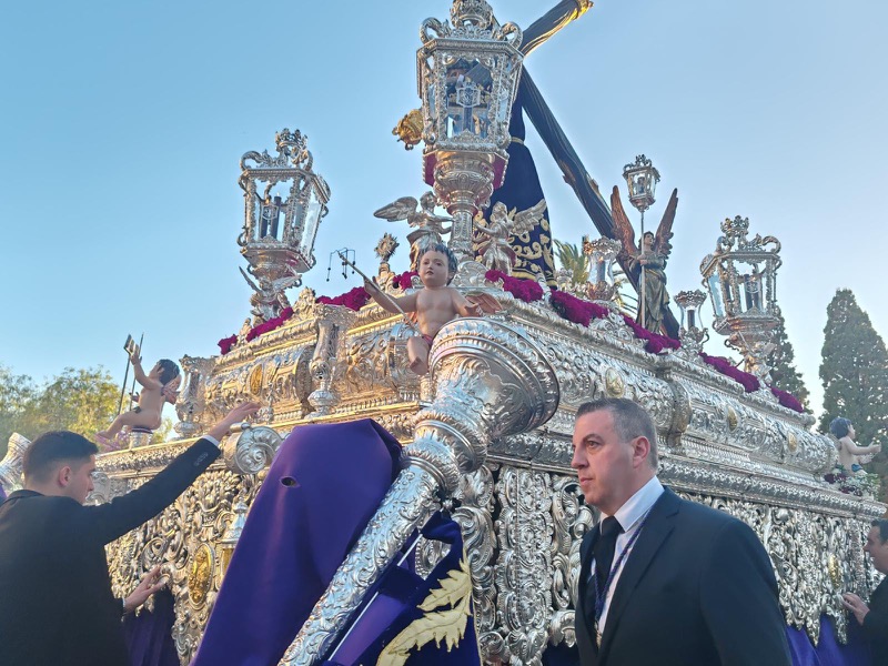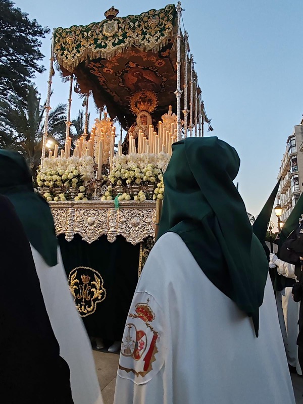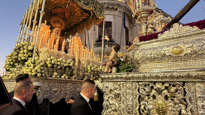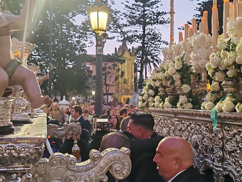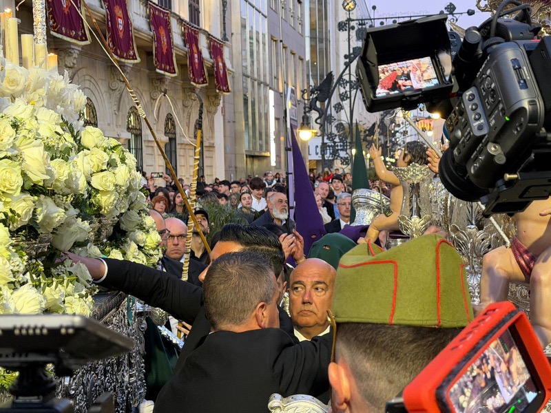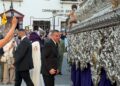 Tras este momento culminante, la procesión continuó su recorrido hacia la carrera oficial, manteniendo el orden y la solemnidad que caracterizan a esta Hermandad. El discurrir de los pasos siguió despertando el interés y la admiración del público a lo largo de todo el itinerario.