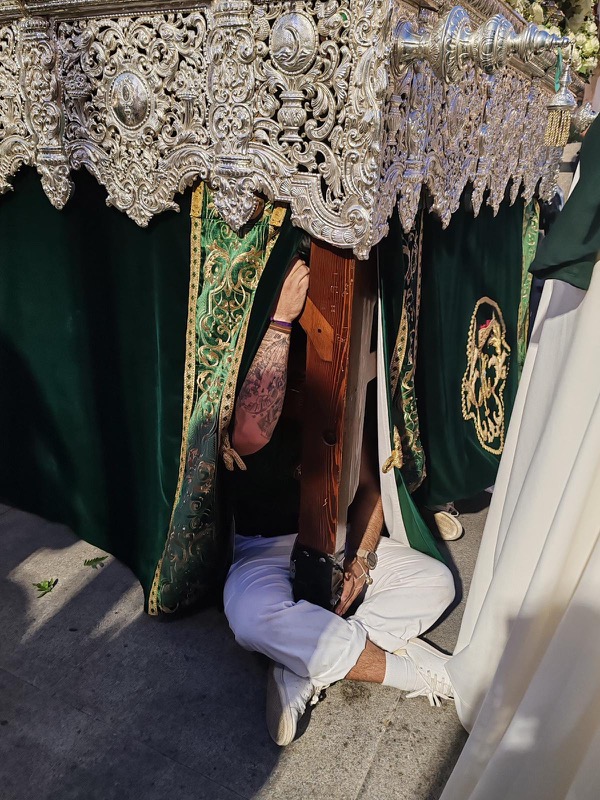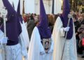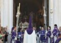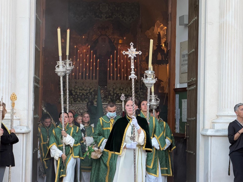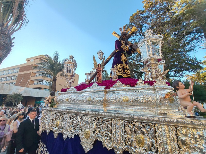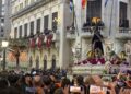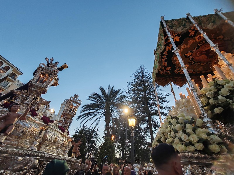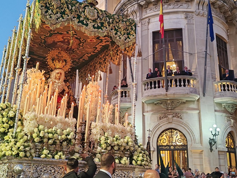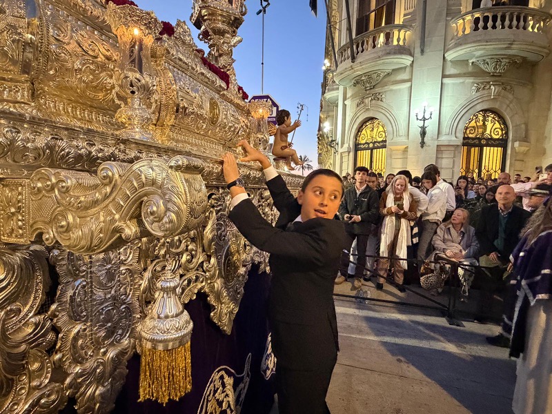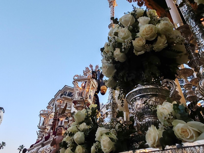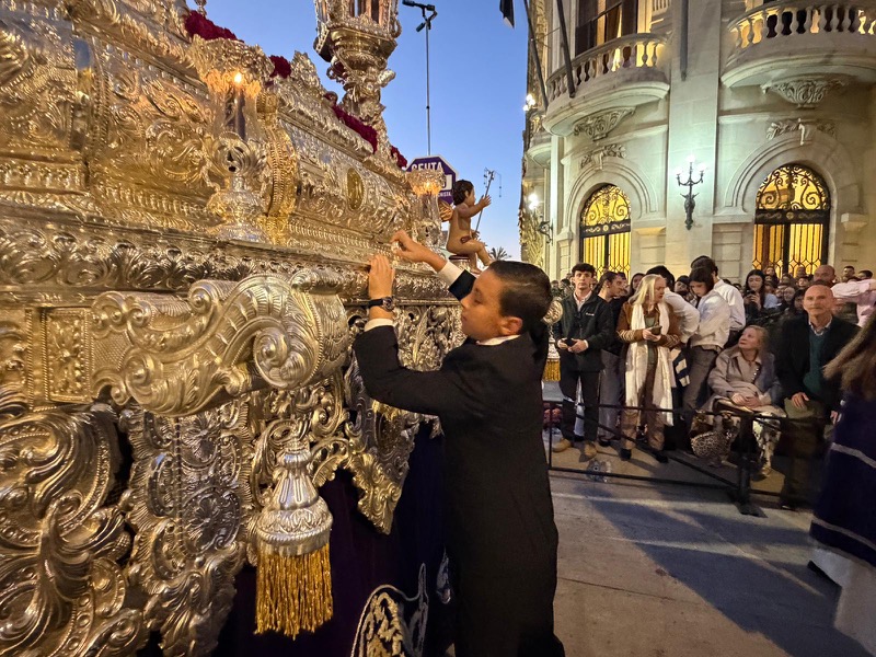 Tras este momento culminante, la procesión continuó su recorrido hacia la carrera oficial, manteniendo el orden y la solemnidad que caracterizan a esta Hermandad. El discurrir de los pasos siguió despertando el interés y la admiración del público a lo largo de todo el itinerario.