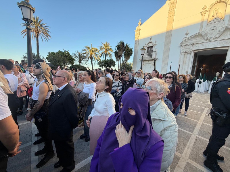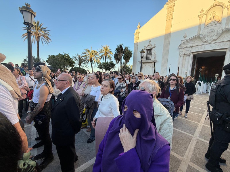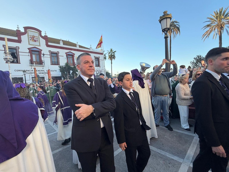 La expectación era más que evidente desde mucho antes de la hora fijada. Decenas de ceutíes se concentraban en los alrededores de la plaza de África, ocupando cada rincón disponible para no perder detalle de una de las estampas más emblemáticas de la Semana Santa local. La presencia masiva de público ha vuelto a confirmar el profundo arraigo que esta Cofradía mantiene entre los vecinos.