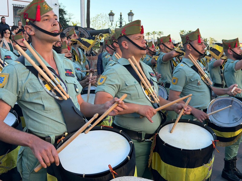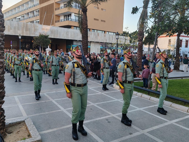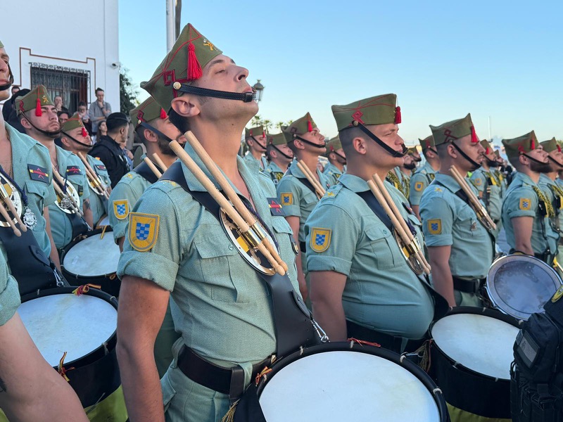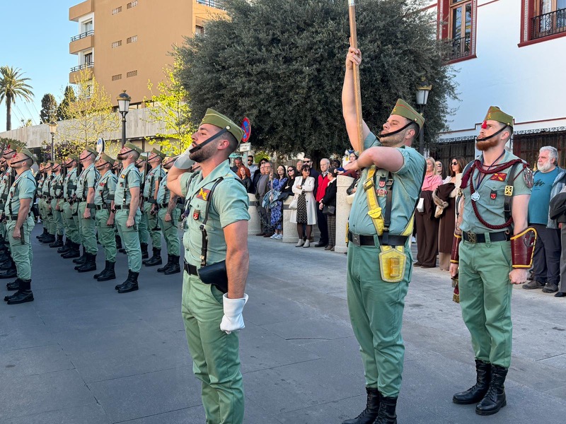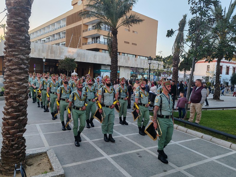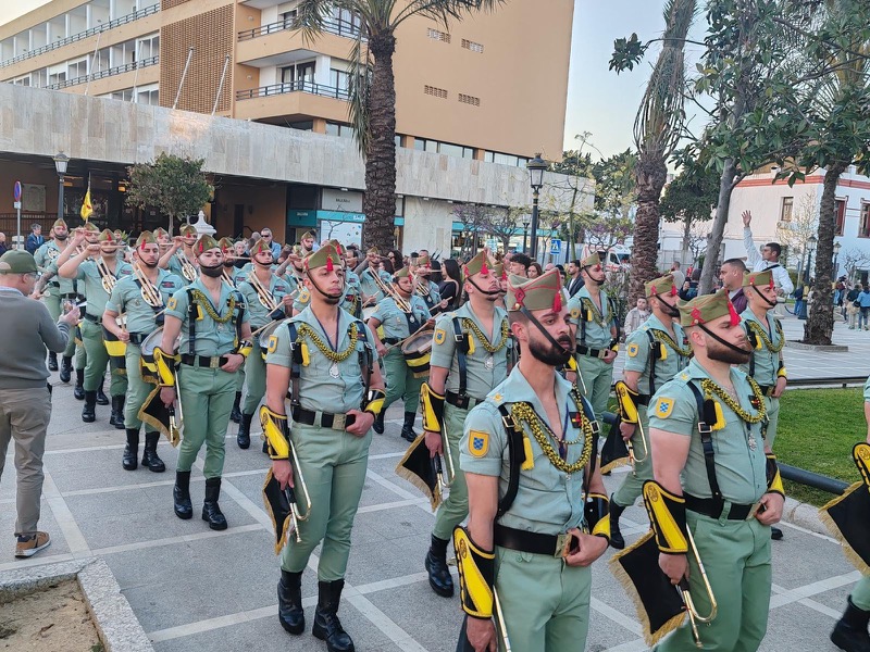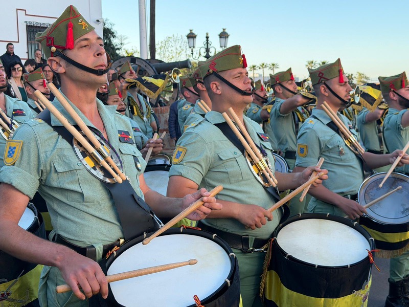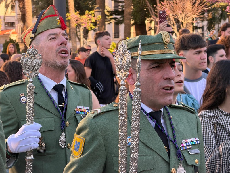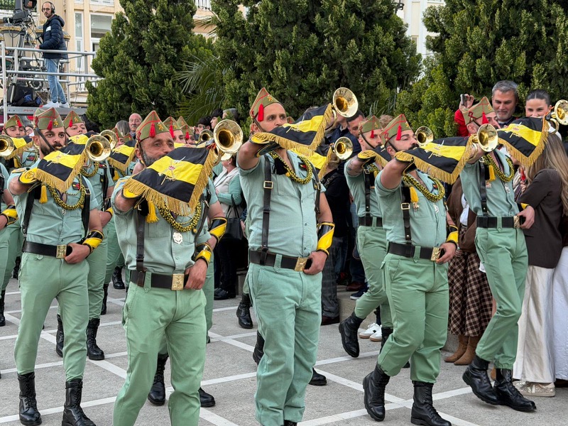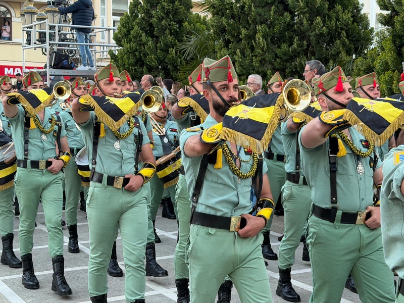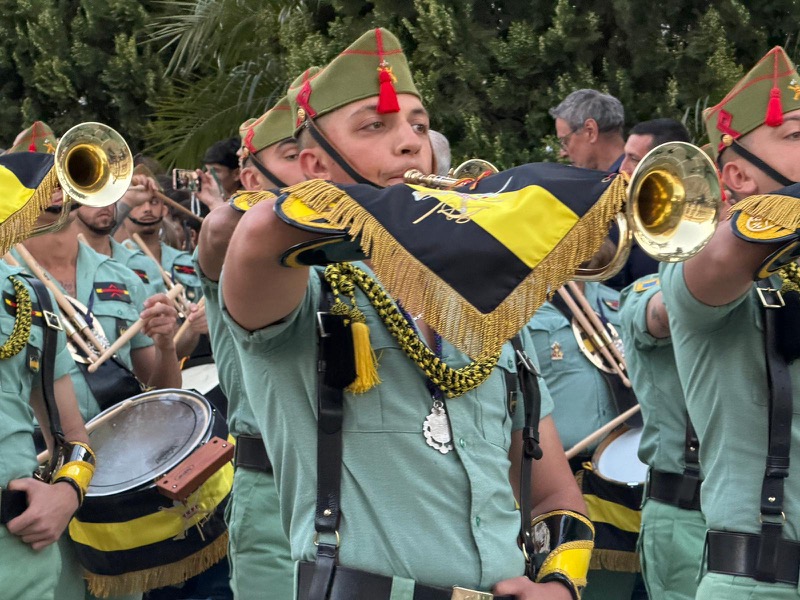 El acompañamiento musical volvió a jugar un papel fundamental en el desarrollo de la estación de penitencia. Las Cornetas y Tambores del Tercio Duque de Alba II de La Legión pusieron sonido al paso del Cristo, aportando una atmósfera imponente y solemne.