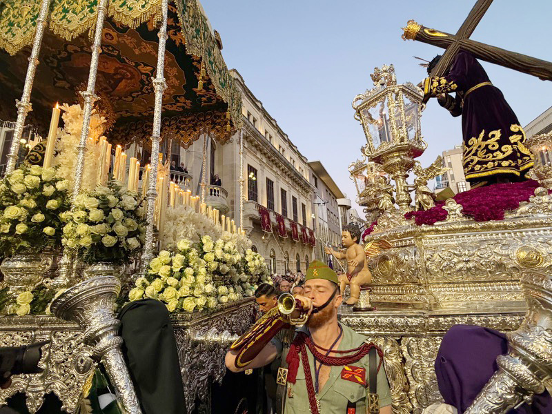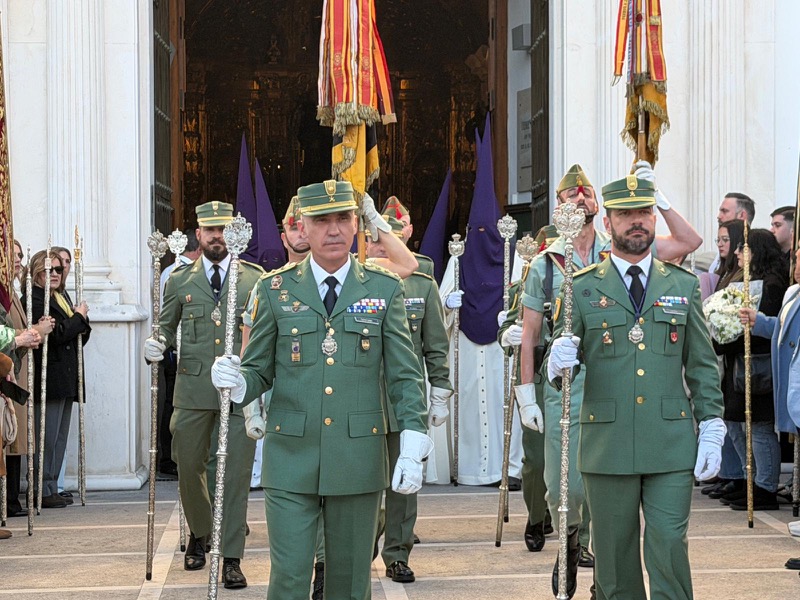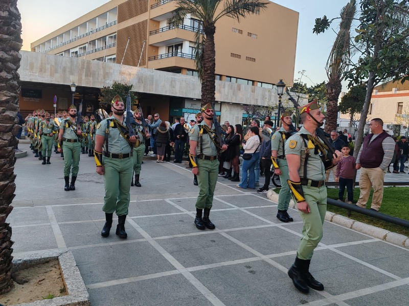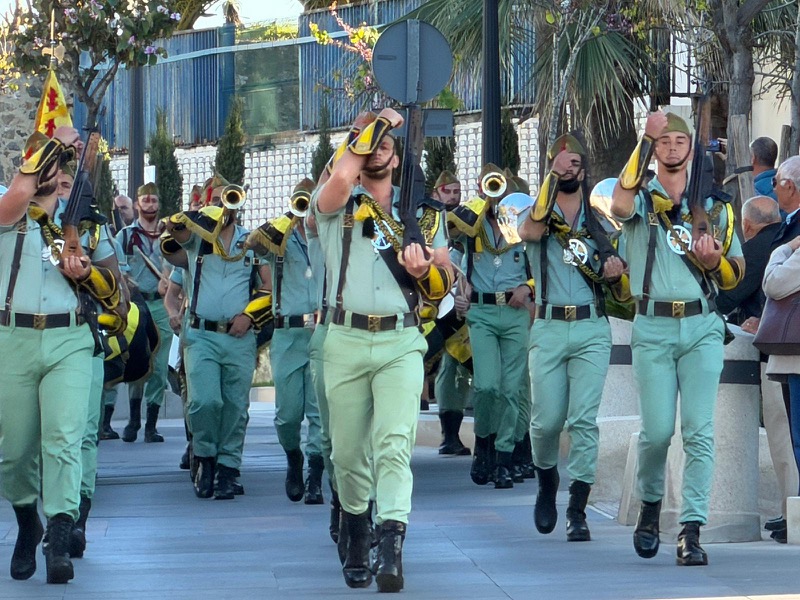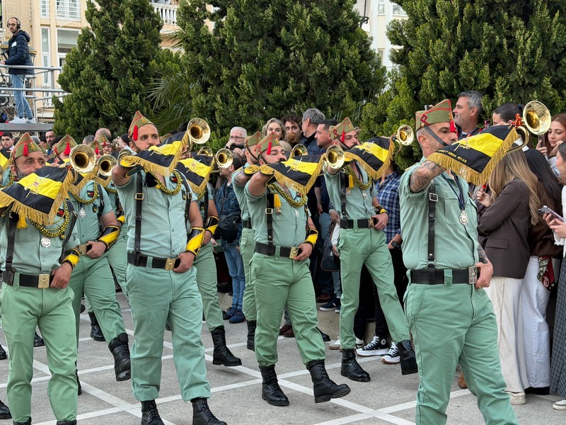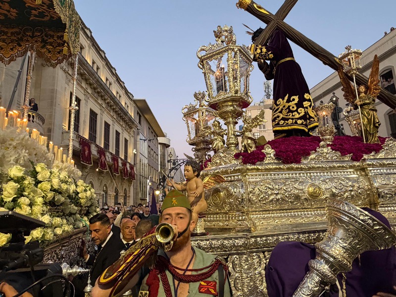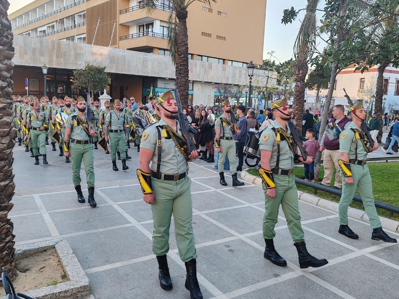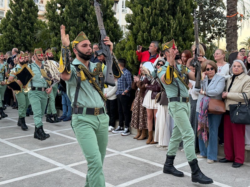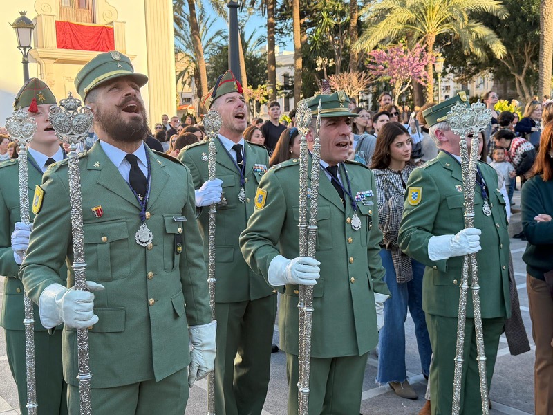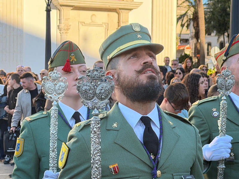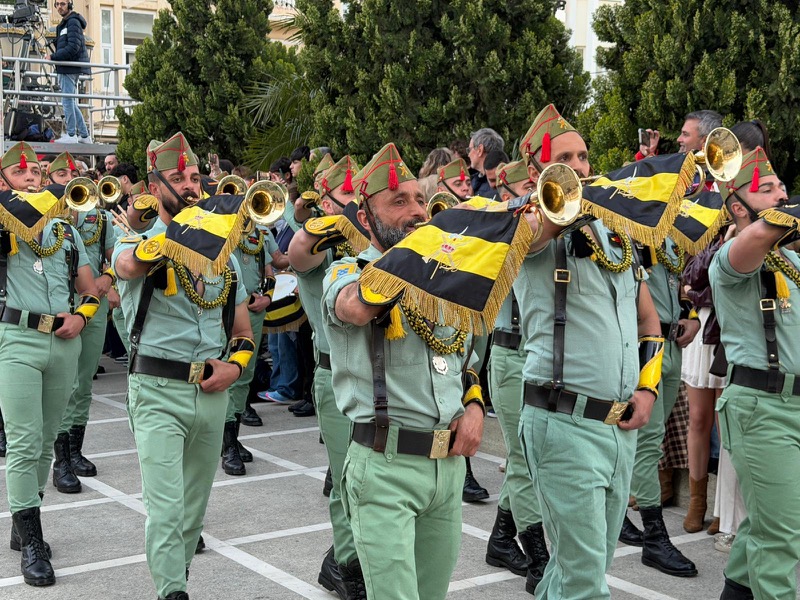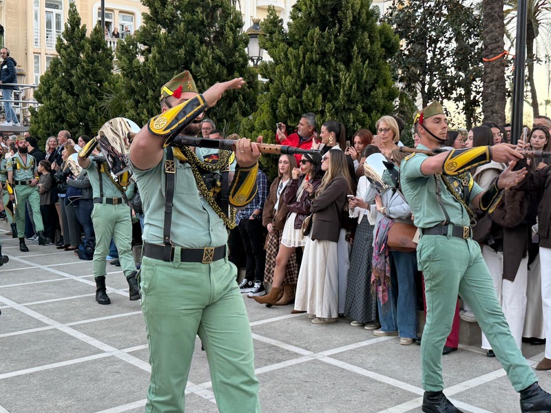 El acompañamiento musical volvió a jugar un papel fundamental en el desarrollo de la estación de penitencia. Las Cornetas y Tambores del Tercio Duque de Alba II de La Legión pusieron sonido al paso del Cristo, aportando una atmósfera imponente y solemne.