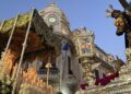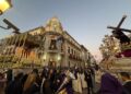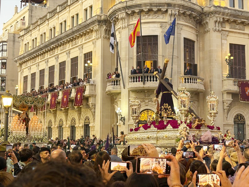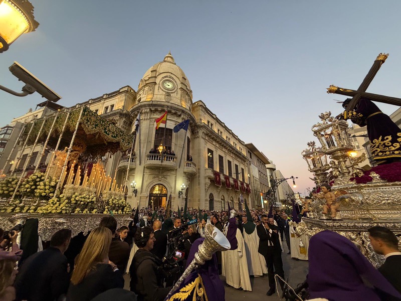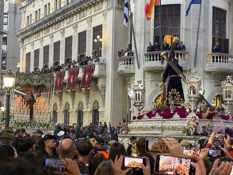 Uno de los instantes más intensos de la jornada tuvo lugar, como es tradición, frente al Palacio de la Asamblea. Allí, ambos pasos se situaron cara a cara en un momento cargado de simbolismo, que volvió a congregar a una multitud expectante.
