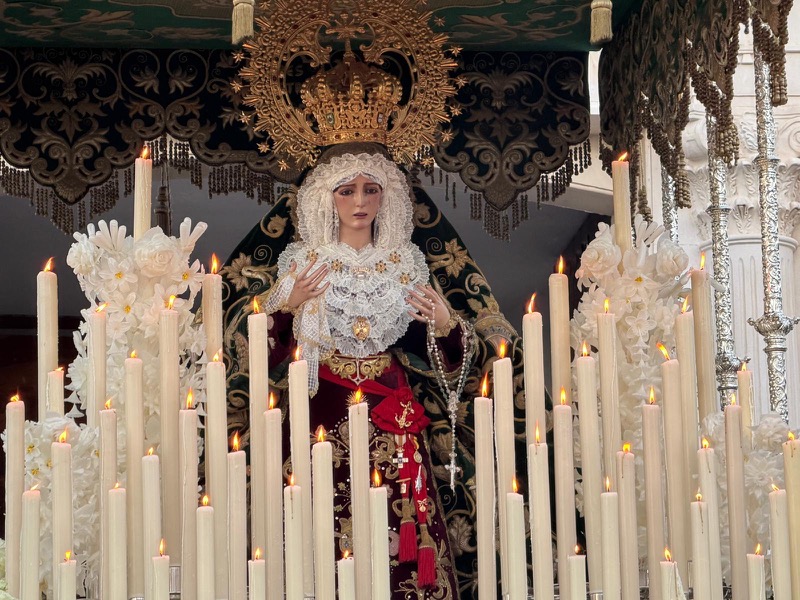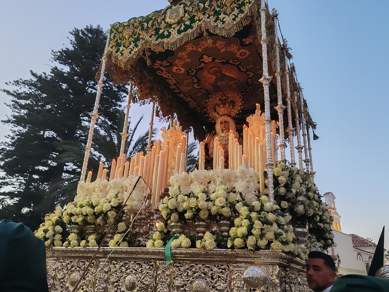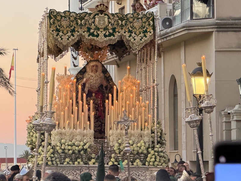 Por su parte, la Virgen de la Esperanza contó con la interpretación de la Asociación Músico Cultural Banda de Música de Tocón, procedente de Granada, cuya presencia añadió un matiz armonioso al recorrido.