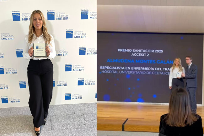 La enfermera ceutí Almudena Montes Galán, especialista en Enfermería del Trabajo y residente en el Hospital Universitario de Ceuta, ha sido galardonada con el segundo accésit de los Premios Sanitas EIR 2025. Un reconocimiento que el sindicato CSIF ha querido poner en valor y destacar el "esfuerzo y la excelencia" de esta profesional ceutí.