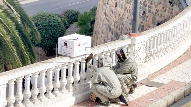 El Servicio de Extinción de Incendios de Ceuta ha intervenido este lunes tras recibir una llamada de aviso por la presencia de un enjambre de abejas en el Paseo de la Marina, a la altura de la Rampa de Abastos.