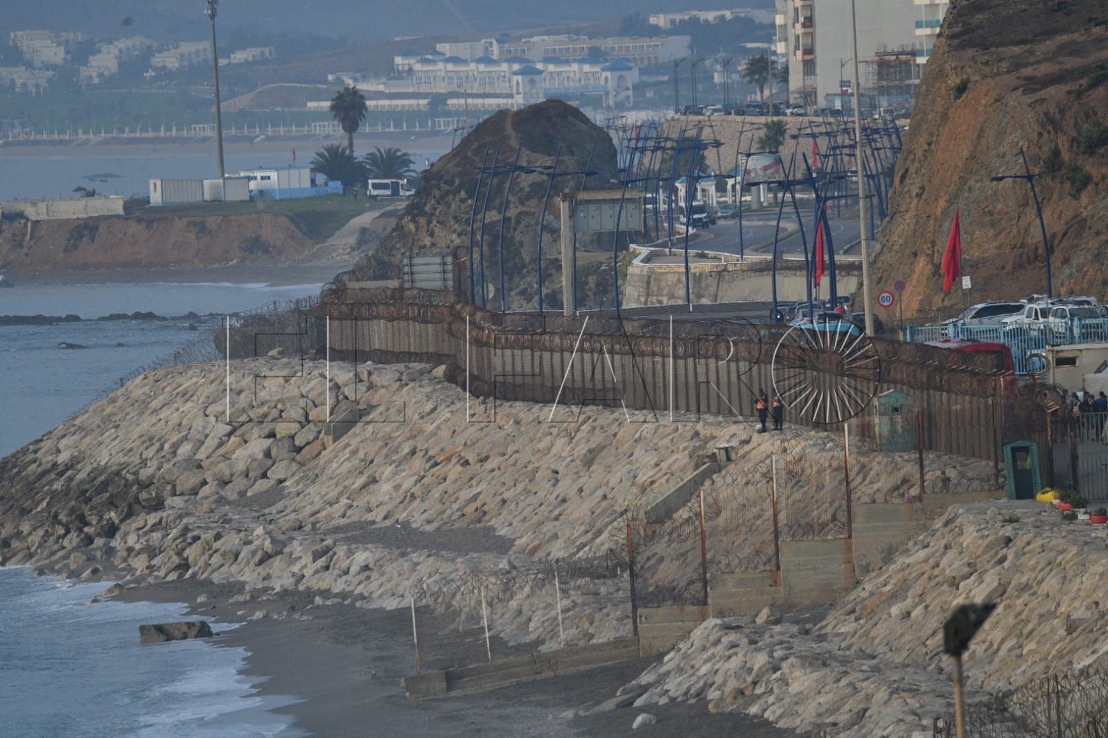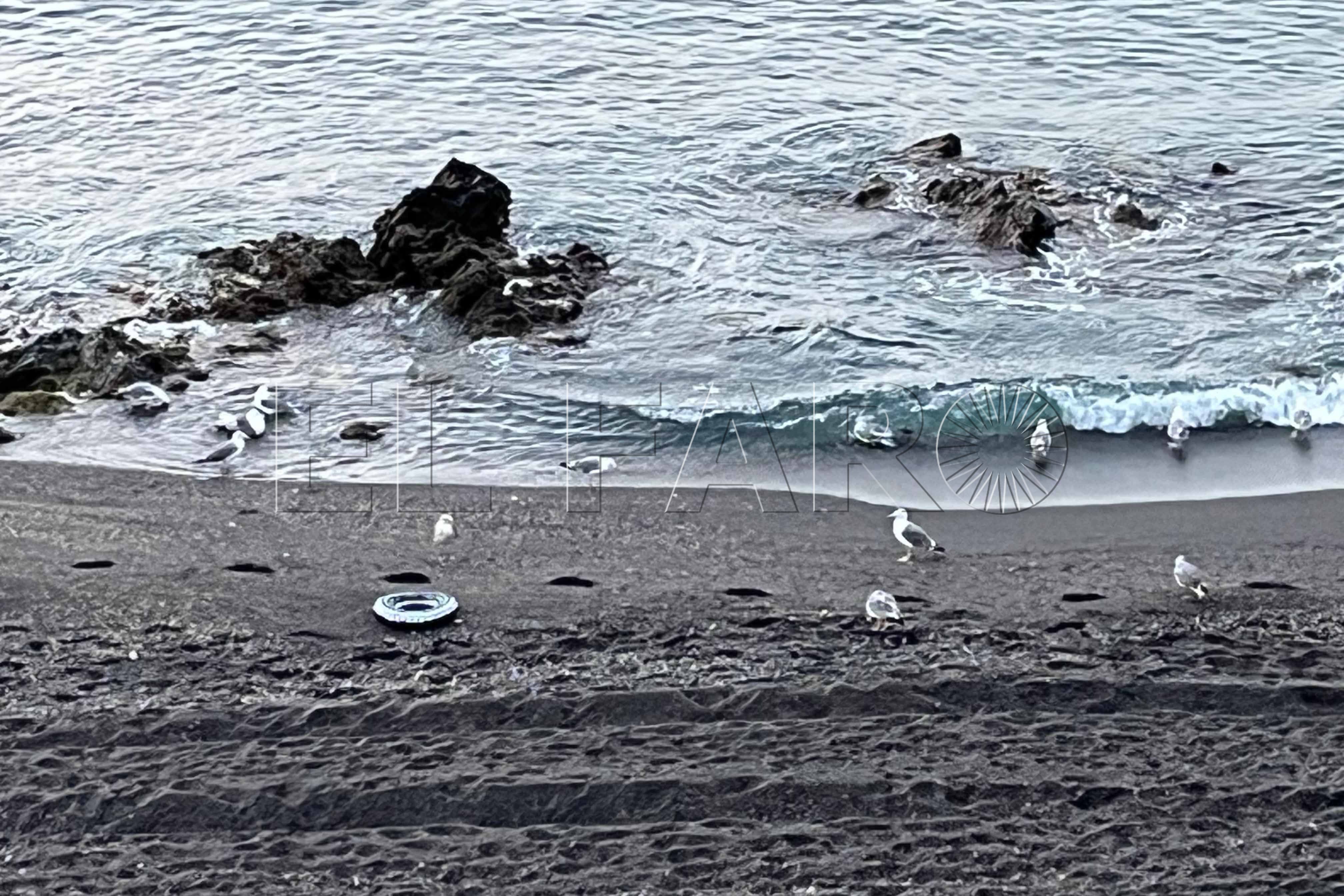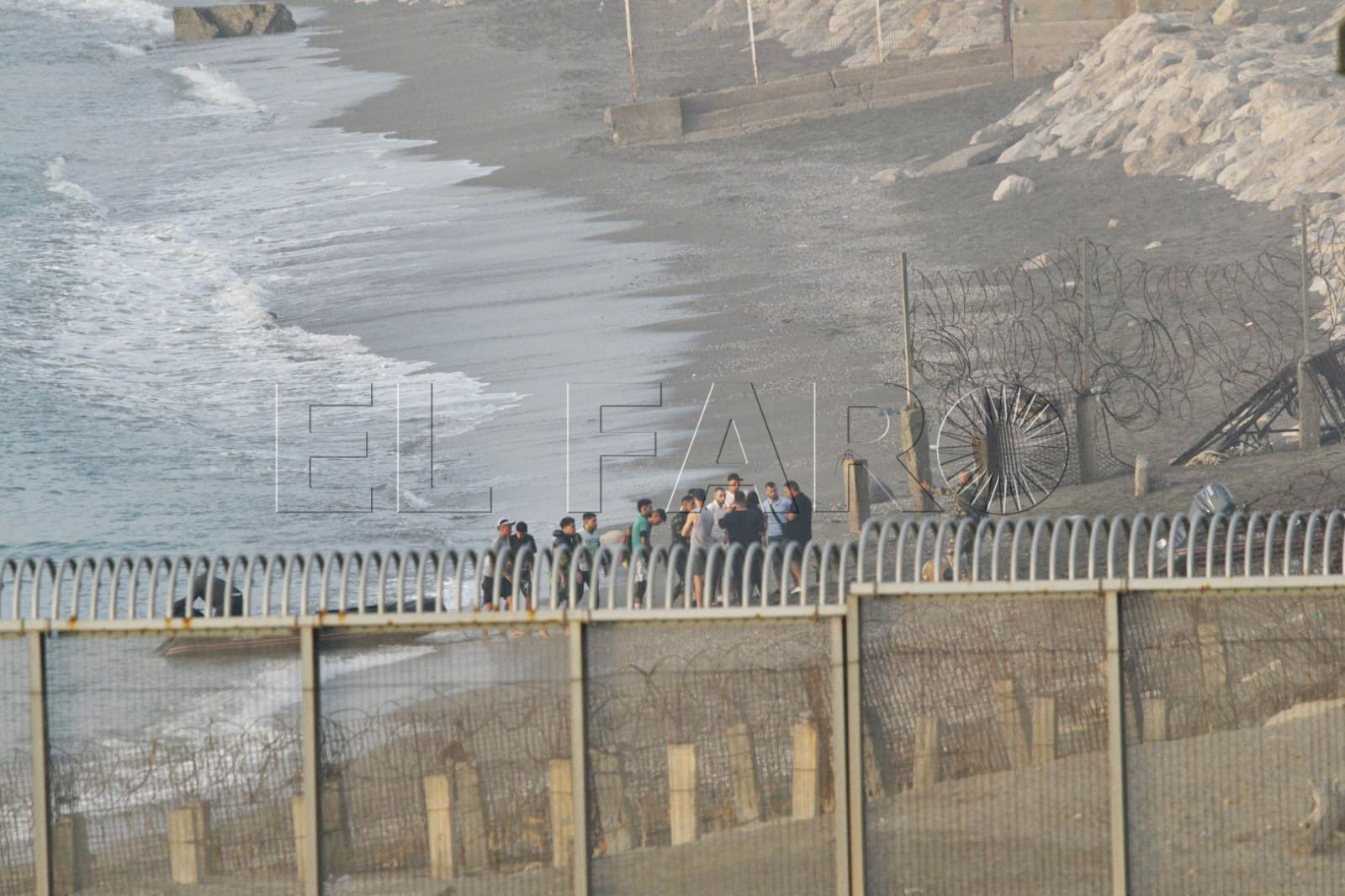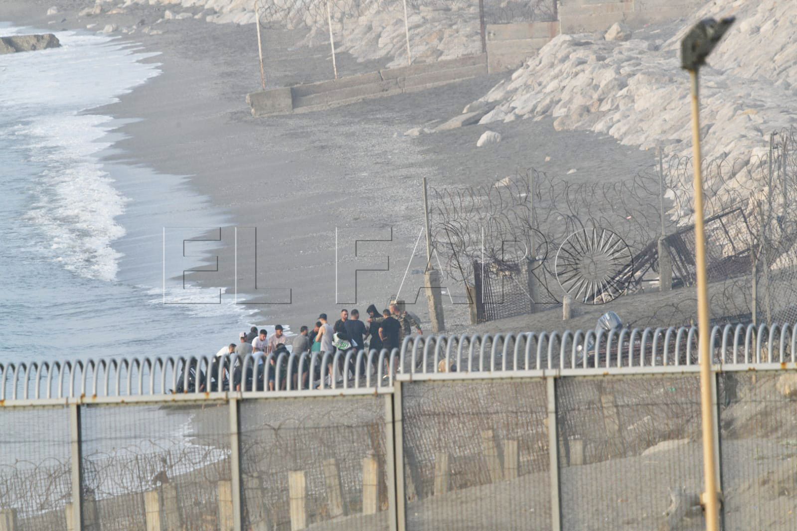 Toda la playa del Tarajal y Almadraba estaba, a primera hora, blindada con agentes. En los arenales y en el mar custodiaban la línea fronteriza.