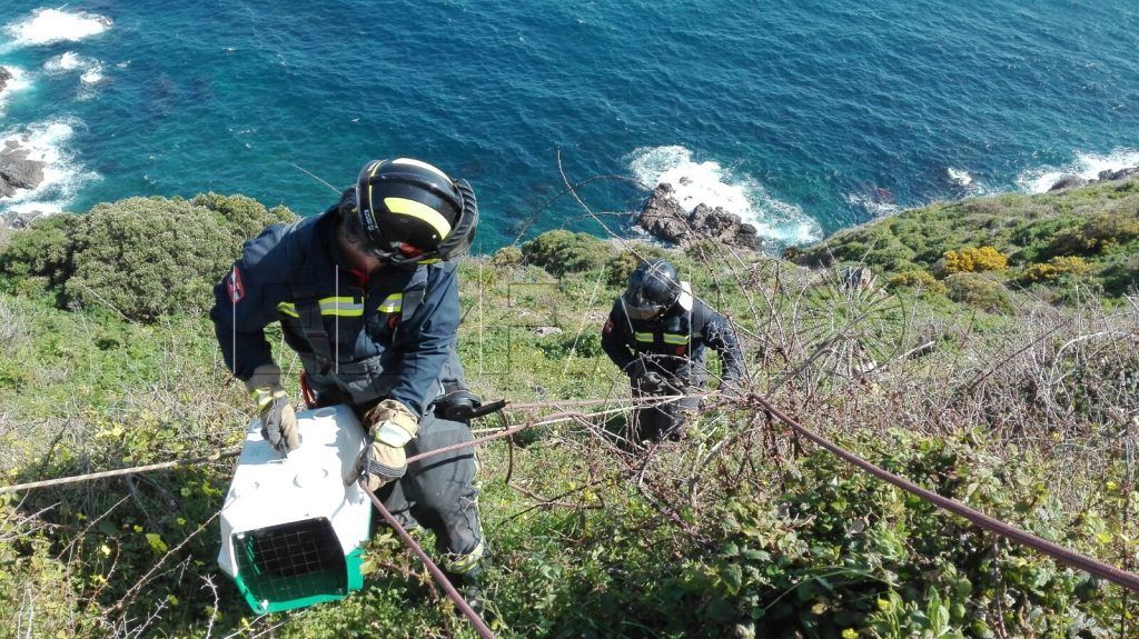 Los siete cachorros se encontraban ocultos en una madriguera en la zona conocida como ‘La Sirena’. Los efectivos de Bomberos tuvieron que llegar hasta ellos equipados con arneses debido a lo escarpado de la zona. “Bajamos hasta ellos con una cesta para recogerlos y en cuanto estuvieron arriba se los llevaron a la Protectora”.