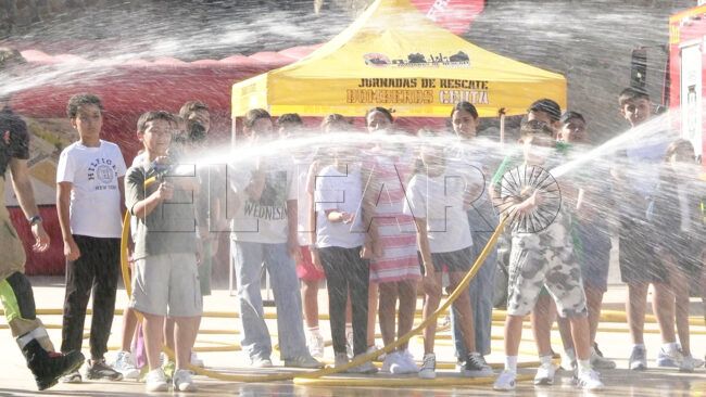 Para ello, se han organizado diferentes actividades, como un simulacro de un incendio en una vivienda, maniobras de reanimación o apagar fuego real con las mangueras de los camiones de los bomberos de Ceuta.