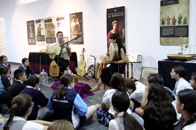 Alumnos de 1º de la ESO del colegio La Inmaculada han visitado en la mañana de este viernes la exposición ‘El legado musical de Al Andalus’, que se puede visitar hasta el próximo 30 de octubre en la Sala de Exposiciones del Centro del Mayor, en Ceuta.