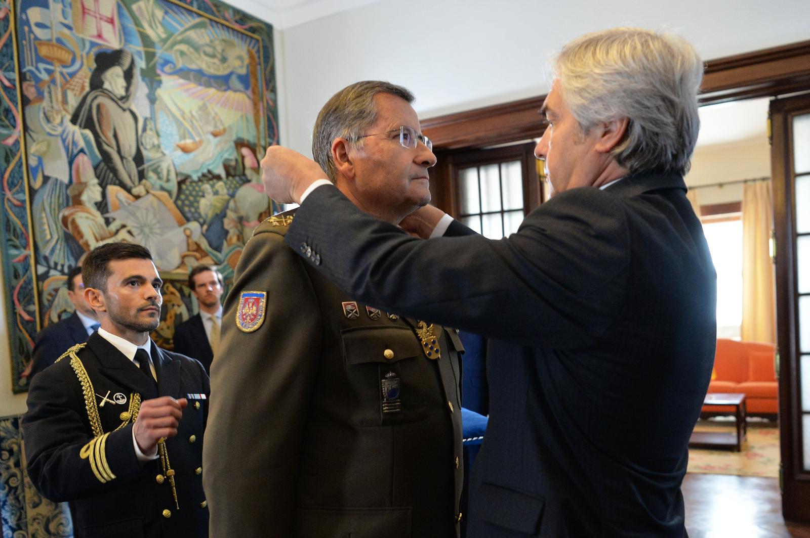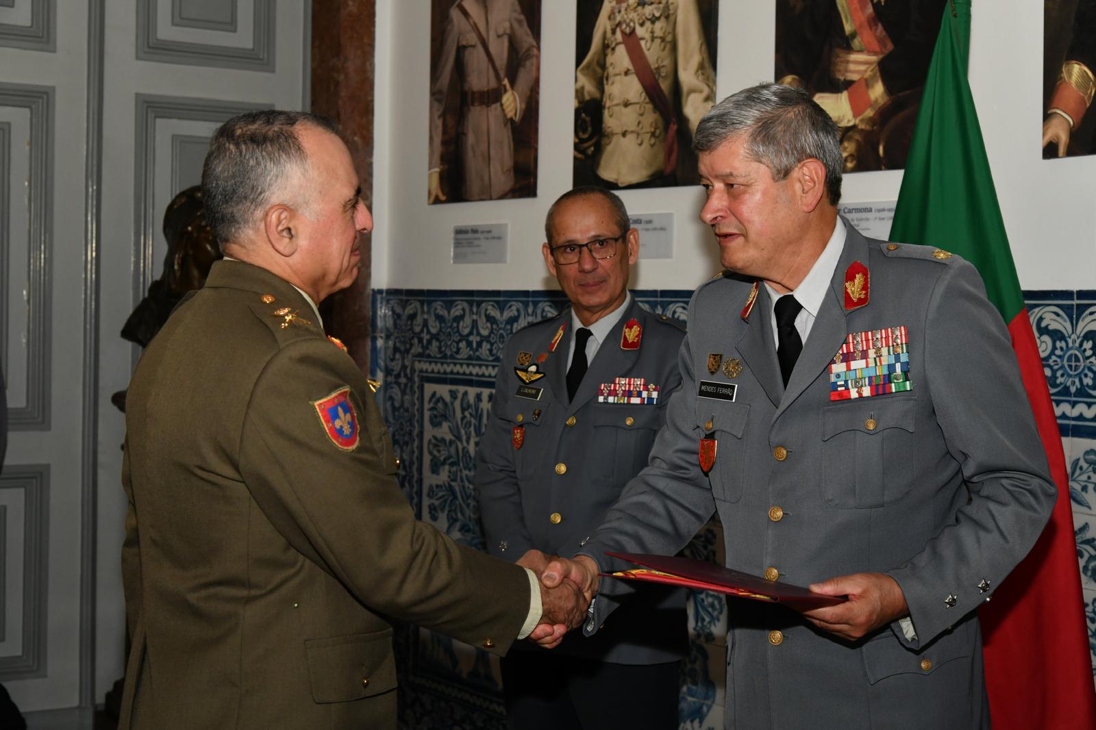 Uno de los momentos más destacados de la visita tuvo lugar durante el encuentro con el ministro de Defensa de la República Portuguesa, Nuno Melo, quien impuso al JEME la Medalla de la Defensa Nacional de primera clase.