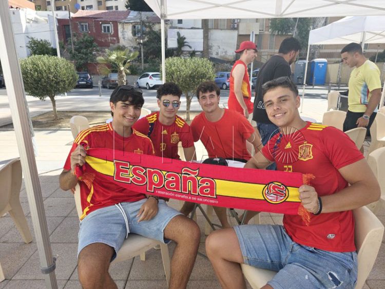 Los más jóvenes, equipados con la indumentaria del conjunto nacional estaban esperanzados con el resultado del partido: “Creo que vamos a quedar 2-1 y el último gol de Joselu”, se atrevía a pronosticar uno de los aficionados mientras que su amigo decía que el partido quedaría “1-1 y ganamos en los penaltis” y por último, el tercero en discordia le daba igual el resultado: “Mientras que gane España me da igual”.