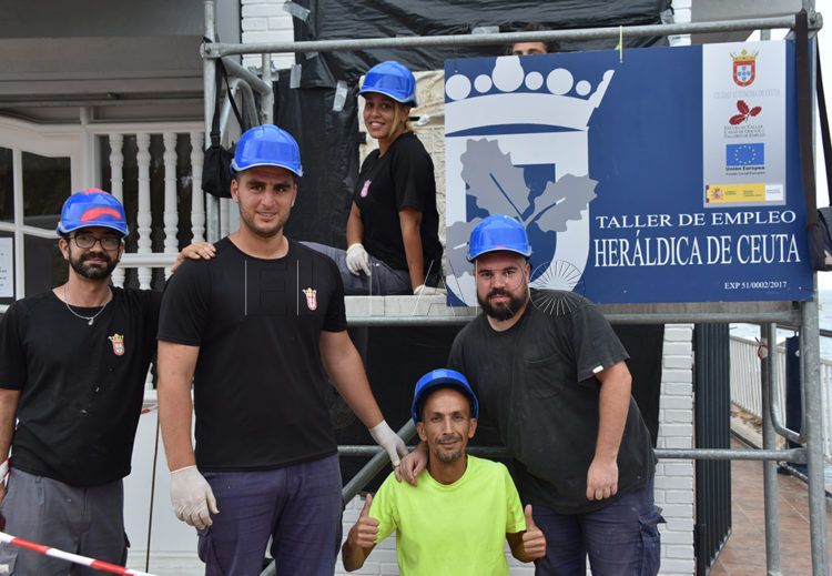 Aún no ha transcurrido un año desde que echó a andar y los integrantes del ‘Taller de empleo Heráldica de Ceuta’ ya pueden decir que por sus manos ha pasado parte de la historia local y de su patrimonio cultural. Un grupo de 16 alumnos, dos monitores y un administrativo de esta iniciativa, bajo las órdenes de su director, Terencio Penalva, están inmersos en la recuperación del Escudo de Felipe V, un emblema del siglo XVIII ubicado en la fachada principal del Club Natación Caballa que presenta la leyenda ‘Felipe V, Rey de las Españas’.