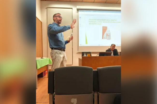 Durante su intervención, Raúl Carrasco ofreció una exposición completa sobre los cuidados enfermeros en pacientes con estomas, subrayando la relevancia del seguimiento continuo, la formación especializada y la actualización constante de los conocimientos para garantizar una atención de calidad.