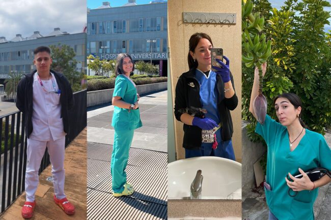 Sobre la formación, no puede estar más contenta: "me ha gustado hacer las prácticas, sin duda, porque al final empiezas a tocar lo que es enfermería, después los profesionales son increíbles igual que el profesorado: "Me gusta esa familiaridad de los profesores y profesionales: saben tu nombre, quién eres. Están siempre dispuestos a ayudarte, tanto los profesionales de las prácticas como los profesores. Es una pequeña familia, y ya no es solo la familia de los profesores, sino la familia que se crea aquí con tus amigos, tus compañeros, que al final muchos de ellos son hasta vecinos".
