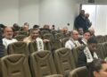 Hassan Larbi comenzó su intervención agradeciendo a los asistentes y a las autoridades de la RFFCE y de la Ciudad Autónoma presentes en el acto.
