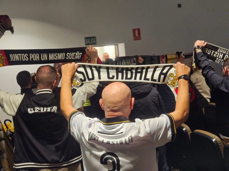 “Unidos es la única manera de hacer algo en Ceuta”, dijo. “Lo que hago es dejarme la vida por vosotros, el homenaje debería ser a vosotros”. Explicó a los aficionados que el viaje a Huesca lo iba a pagar él de su bolsillo como agradecimiento por todo el dinero que se dejan en el club.