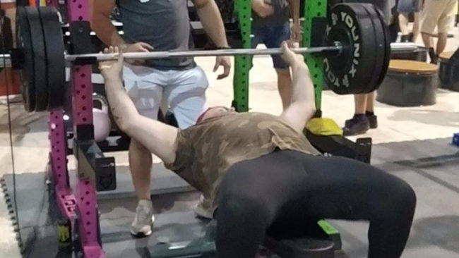 El deportista ceutí Alonso Mena Fontalba, campeón del Mundo en el año 2019 de strongman, realizó el pasado fin de semana una exhibición de fuerza y resistencia en press banca a repeticiones en el Stand de la bebida Reign de Monster en Sevilla.