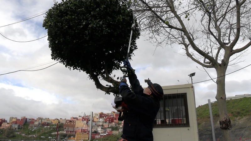 Aunque en un principio pueda parecer una poda convencional, lo cierto es que los trabajadores están centrados en moldear y mejorar la apariencia de los árboles.