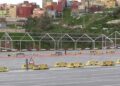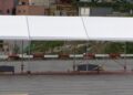 En el lugar ya se puede observar parte de la estructura de la carpa instalada para la jornada. Según el coordinador, el esqueleto de la carpa ya estaba montado, aunque la lona tuvo que retirarse previamente debido a las condiciones meteorológicas.