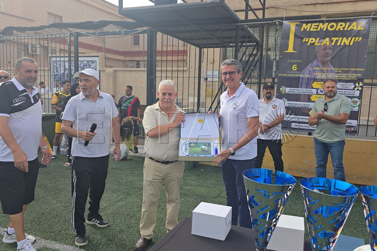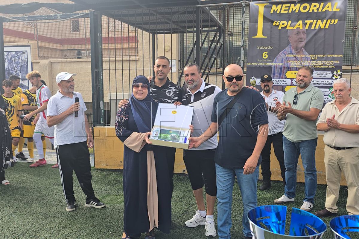 La familia Etihad ha vivido una jornada de lo más especial. La tarde de este sábado la familia de Abdelmalik Platini y Tayo tardarán en olvidarla tras lo sucedido en el ‘54’. Se ha reconocido a la familia de Platini, una figura vinculada al fútbol de Ceuta durante tantos años, es por eso que esta jornada se ha denominado ‘I Memorial Platini’. Además, también se ha homenajeado a ‘Tayo’, mítico entrenador de Ceuta que ha estado en los banquillos más de 50 años.